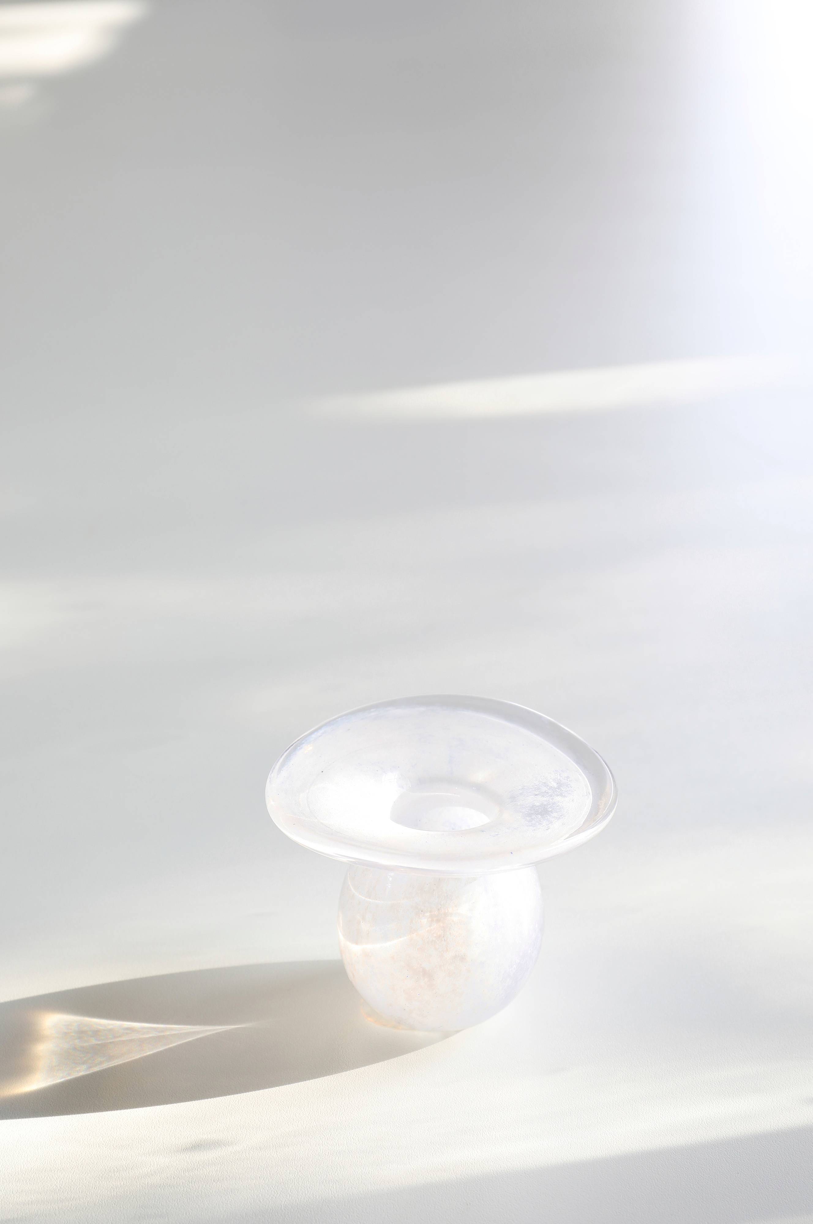 Lille glasvase velegnet til blandede små buketter af forårsblomster og korte stilke fra haven eller som løgglas til hyacinter og tulipanløg. Mundblæst i Småland på Bergdala Glasbruk. Hver vase er håndlavet og unik, derfor varierer de i form og farve. Højde ca. 8 cm.