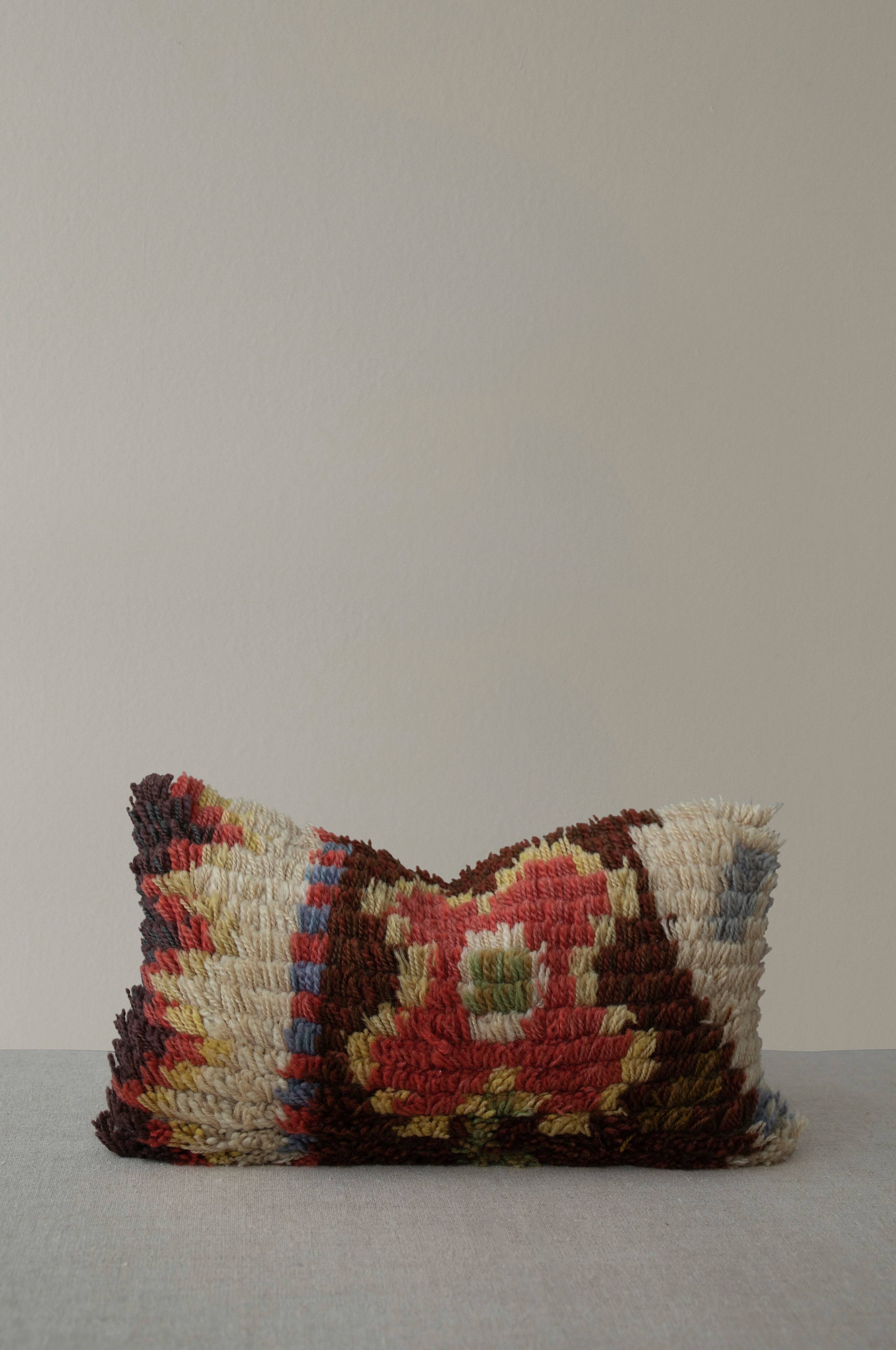 Pude med forside skåret ud af ældre håndvævede ryatæpper og vægtæpper med bagside af overskudstekstiler. Genbrug af materialer i stedet for ny produktion er et mere bæredygtigt valg og et skridt til at reducere tekstilspild. Mønstret forside og ensfarvet velourbagside. Puderne varierer i mønster og farvenuance, og der kan forekomme mindre kosmetiske fejl i produktet. Puderne bliver syet lokalt i Sverige. Sælges inklusiv en velfyldt monteringspude med andefjer, der er Oeko-Tex® certificeret. Størrelse: 25x40 cm