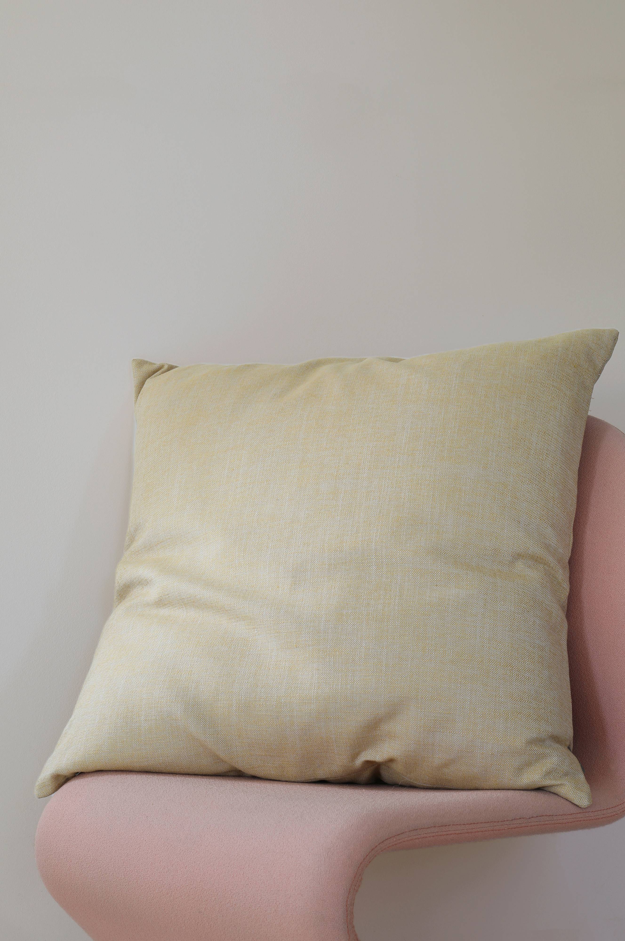 Pude syet af genbrugstekstil med smuk struktur. Genbrug af materialer i stedet for ny produktion er et mere bæredygtigt valg og et skridt til at reducere tekstilspild. Sælges inklusive monteringspude med andefjer, der er Oeko-Tex® certificeret.
