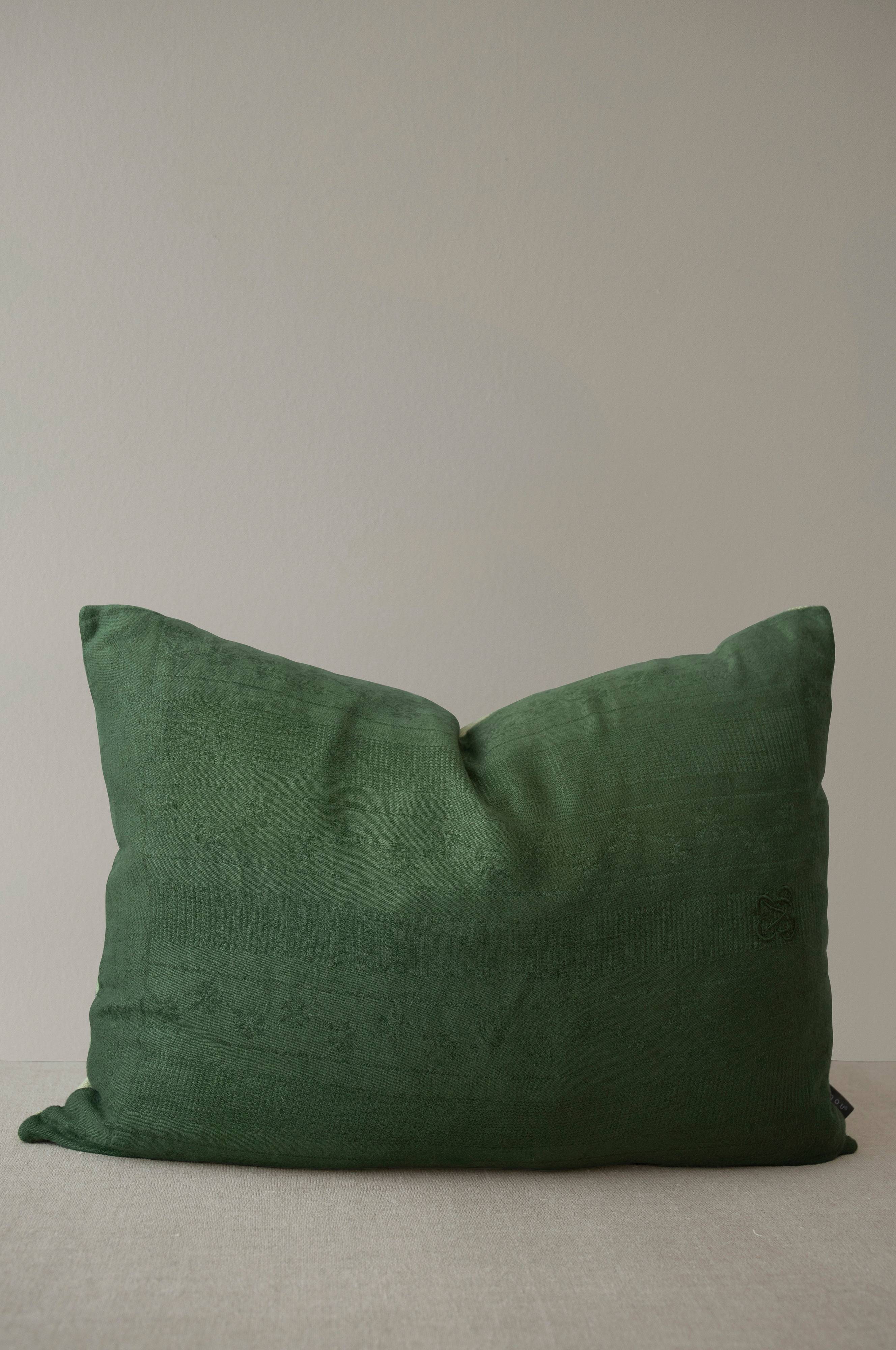 Pude med forside af ældre linnedhåndklæder, der er blevet rødfarvet med GOTS-certificeretfarvepigment i Sverige, bagside af overskudsstof. Genbrug af materialer i stedet for ny produktion er et mere bæredygtigt valg og et skridt til at reducere tekstilspild. Mønstret forside og ensfarvet bagside. Puderne varierer i udseende og farvenuance, og der kan forekomme mindre kosmetiske fejl i produktet. Puderne bliver syet lokalt i Sverige. Sælges inklusiv en velfyldt monteringspude med andefjer, der er Oeko-Tex® certificeret.