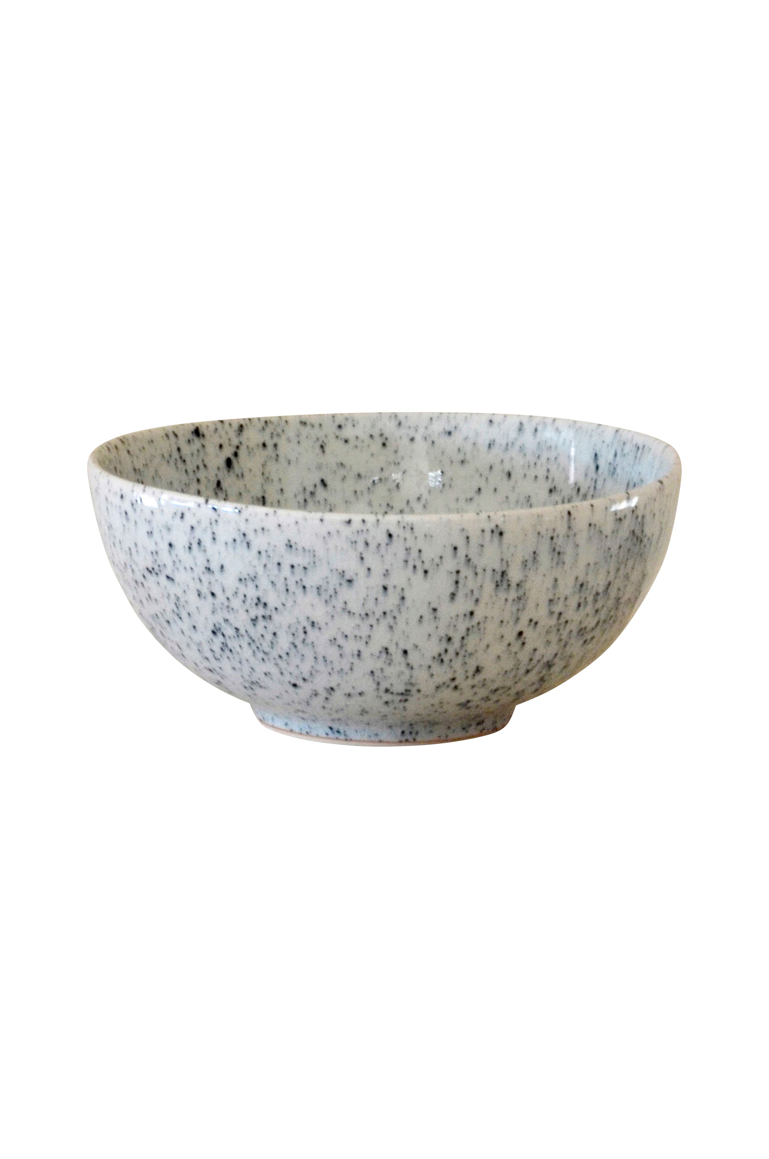 Skål i keramik som er støbt i hånden. Den er glaseret med celadon glasur, hvis karakteristiske træk er dets fine krakelering, smukke farvenuancer og hårde overflade. Det blå stænkmønster varierer mellem de forskellige servicedele, som er håndmalede. Størrelsen passer perfekt som lille salatskål, men er også udmærket som serveringsskål til chips, dressinger og saucer m.m. Mimous keramik PURE er en del af en serie servicedele, som er fremstillet i Lampang i det nordlige Thailand. Området er kendt for sit naturligt fine ler med højt kaolindhold, hvilket gør keramikken virkelig holdbar. Hver del støbes i håndlavede forme og glaseres derefter med Mimous-glasur. Pure-servicet støjer ikke og har en udstråling, som man ikke bliver træt af. Servicet er kendetegnet ved de flotte proportioner, og er robust på grund af den fine ler og de hårde glasurer. Tåler mikrobølgeovn og maskinopvask. Størrelse 18 cm