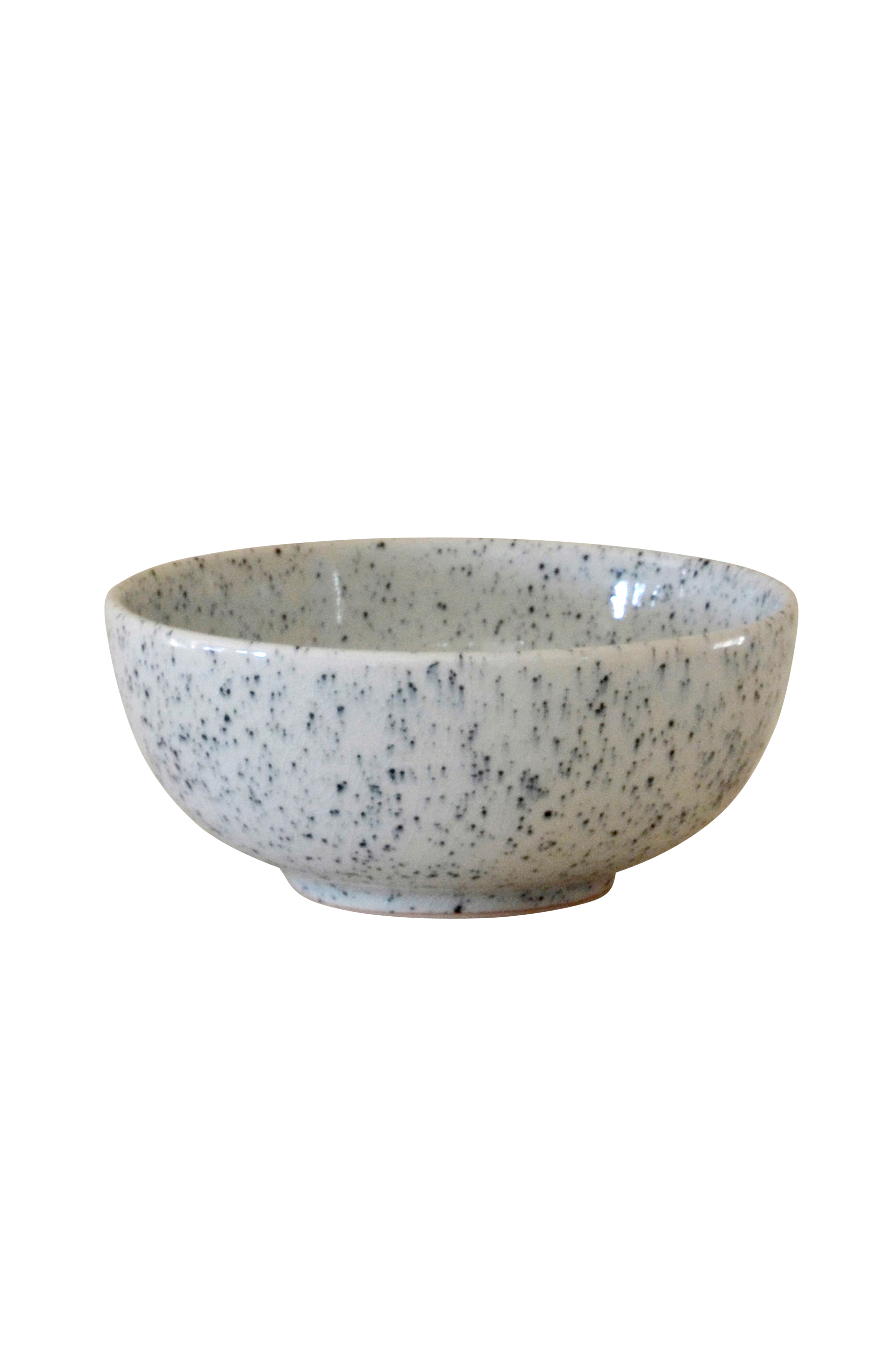 Skål i keramik som er støbt i hånden. Den er glaseret med celadonglasur, hvis karakteristiske træk er dets fine krakeleringer, smukke farvenuancer og hårde overflade. Det blå stænkmønster varierer mellem de forskellige servicedele, da stænkene påføres i hånden. Størrelsen passer perfekt som suppeskål, men er også udmærket som serveringsskål til snacks og dip. Mimous keramik PURE er en serie servicedele, som er fremstillet i Lampang i det nordlige Thailand. Området er kendt for sit naturligt fine ler med højt kaolindhold, hvilket gør keramikken virkelig holdbar. Hver del støbes i håndlavede forme og glaseres derefter med en af Mimous glasurer. PURE-servicet støjer ikke og har en udstråling, som man ikke bliver træt af. Servicet er kendetegnet ved de flotte proportioner, som bliver solide og robuste på grund af den fine ler og de hårde glasurer. Tåler mikrobølgeovn og maskinopvask. Størrelse 15 cm