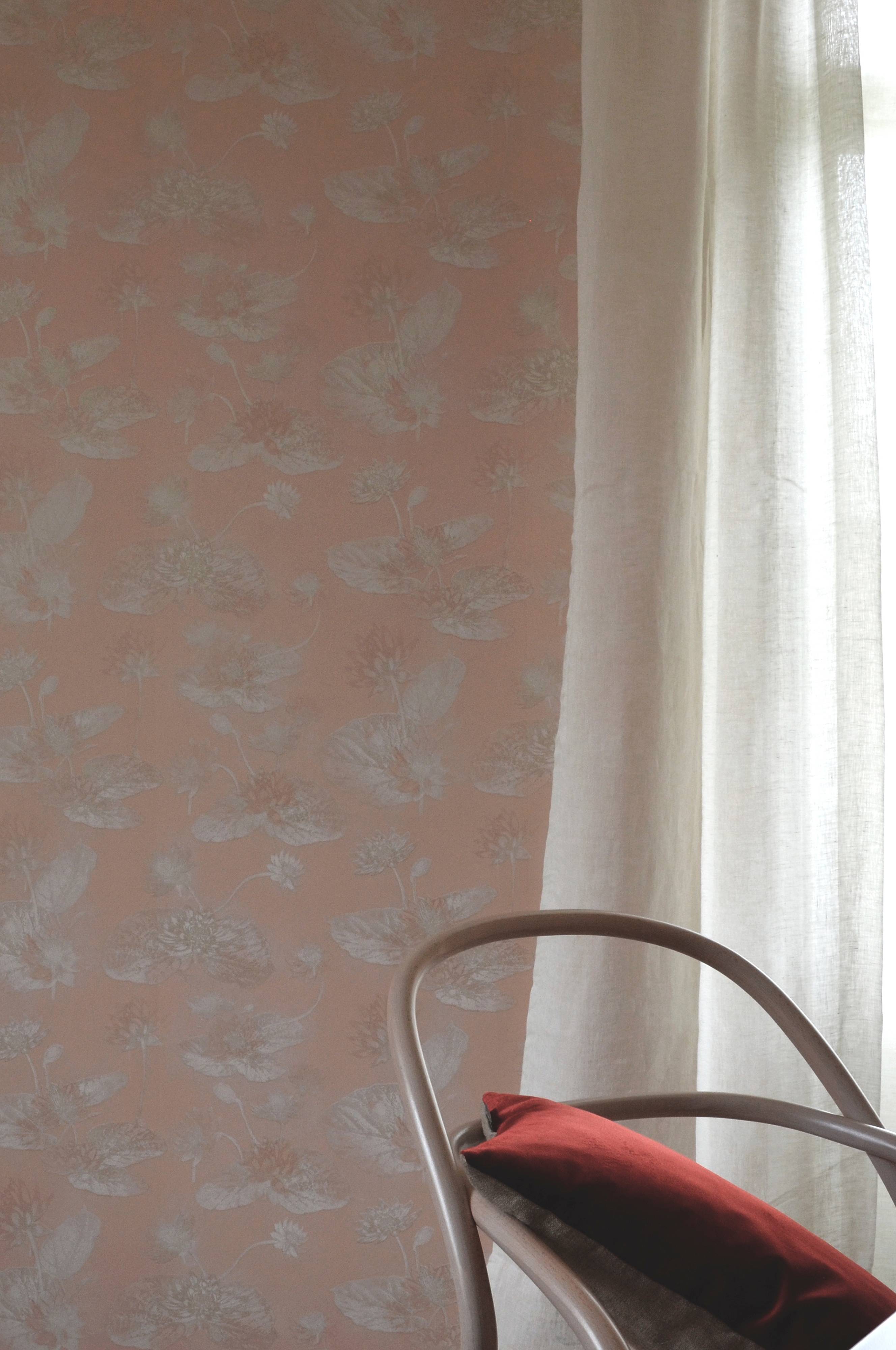 Smukt håndtegnet mønster med store lotusblomster med farvestænk og støvede konturer. Blandingen af matte og blanke trykfarver gør at tapetet ændrer udtryk afhængigt af hvor lyset falder på væggen og hvilken tid på dagen det er. Kan både bruges som tapet i hele rummet og som en fondvæg. Lotus Lake er et non woventapet, hvilket gør tapetseringen nemmere, da du stryger limen direkte på væggen og derefter sætter tapetet op. Du skal bruge vævklæber/vævlim, fordi almindeligt tapetklister er beregnet til papirtapeter. Her hos Ellos kan du købe en vævklæber/vævlim beregnet til non-woven tapeter. Fremstillet i Sverige. Mønsterrapport: 53 cm halfdrop, så kaldt forskudt mønsterpasning, d.v.s. hveranden bane sættes en halv rapport nede. Hver rulle er 10,05 m. Bredde 53 cm.