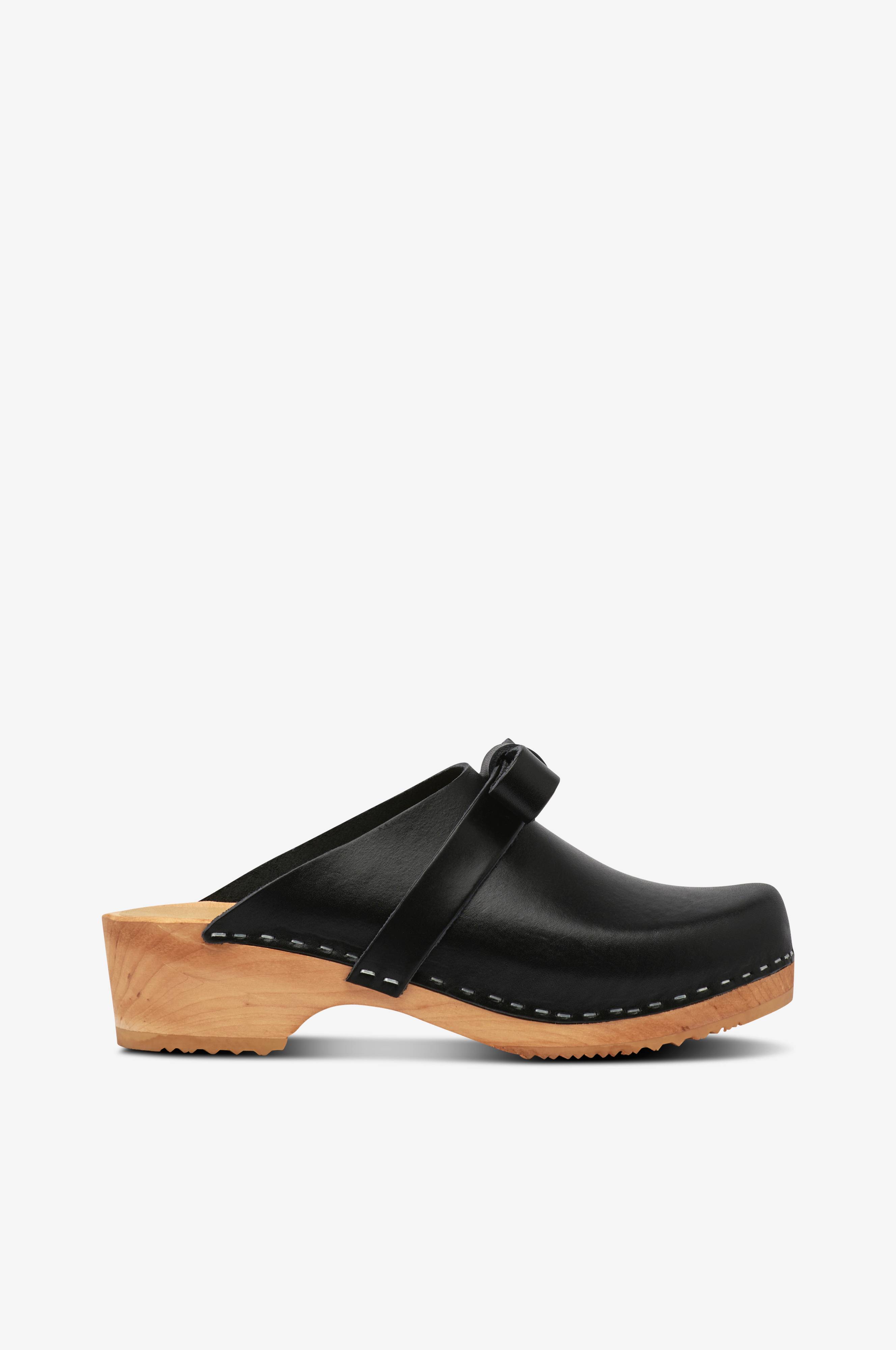 - Læderet i de sort- og nudefarvede træsko er vegetabilsk garvet med barkekstrakt.