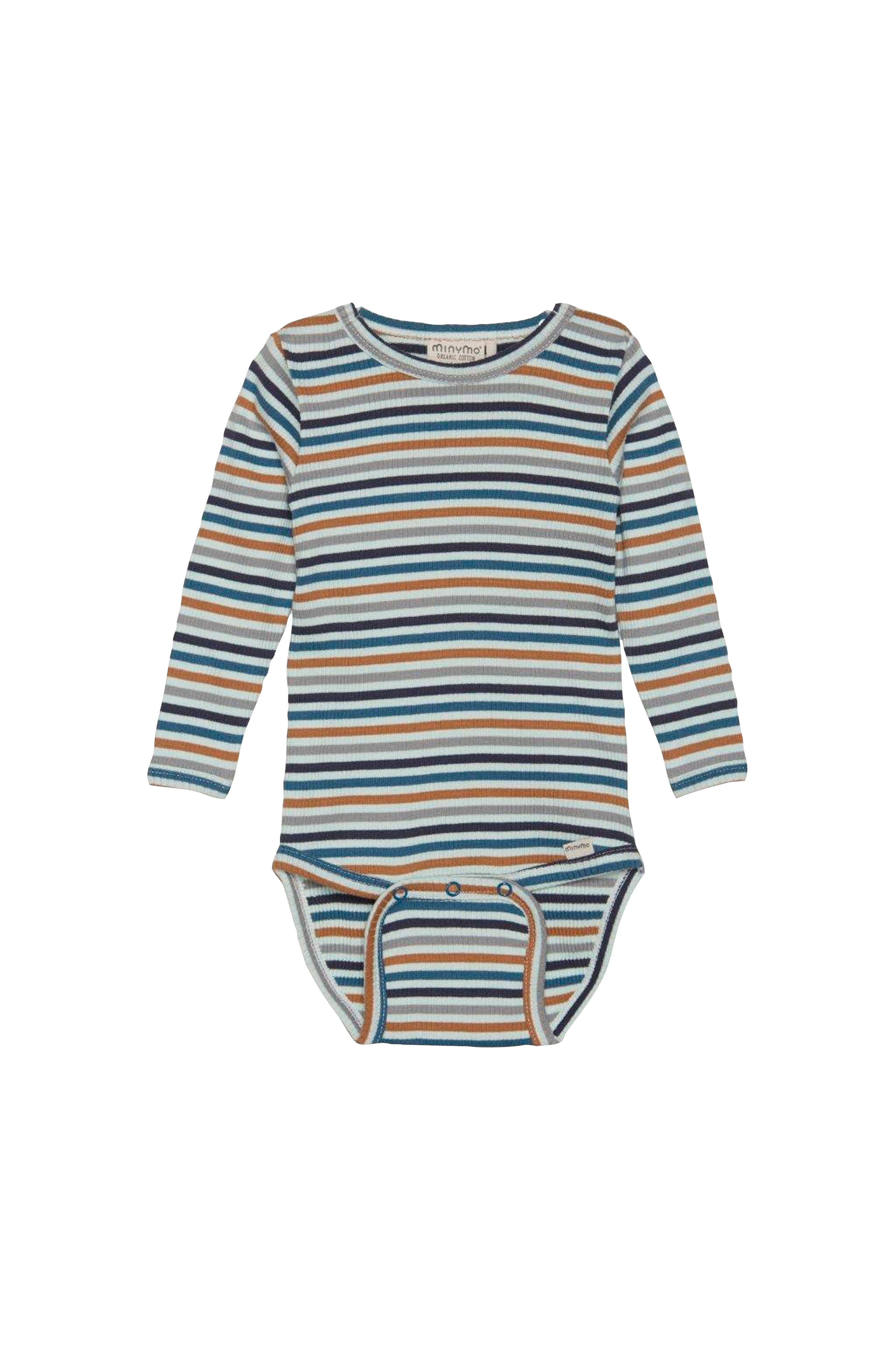 • Lange ærmer • Trykknapper på skuldrene og ved skridtet • Fremstillet af ribbet bomuldsjersey • Produktet indeholder økologisk bomuld, som er dyrket uden kemiske sprøjtemidler, kunstgødning og genmodificerede afgrøder (GMO). Dette betyder et sundere arbejdsmiljø for landmænd og bedre jord.