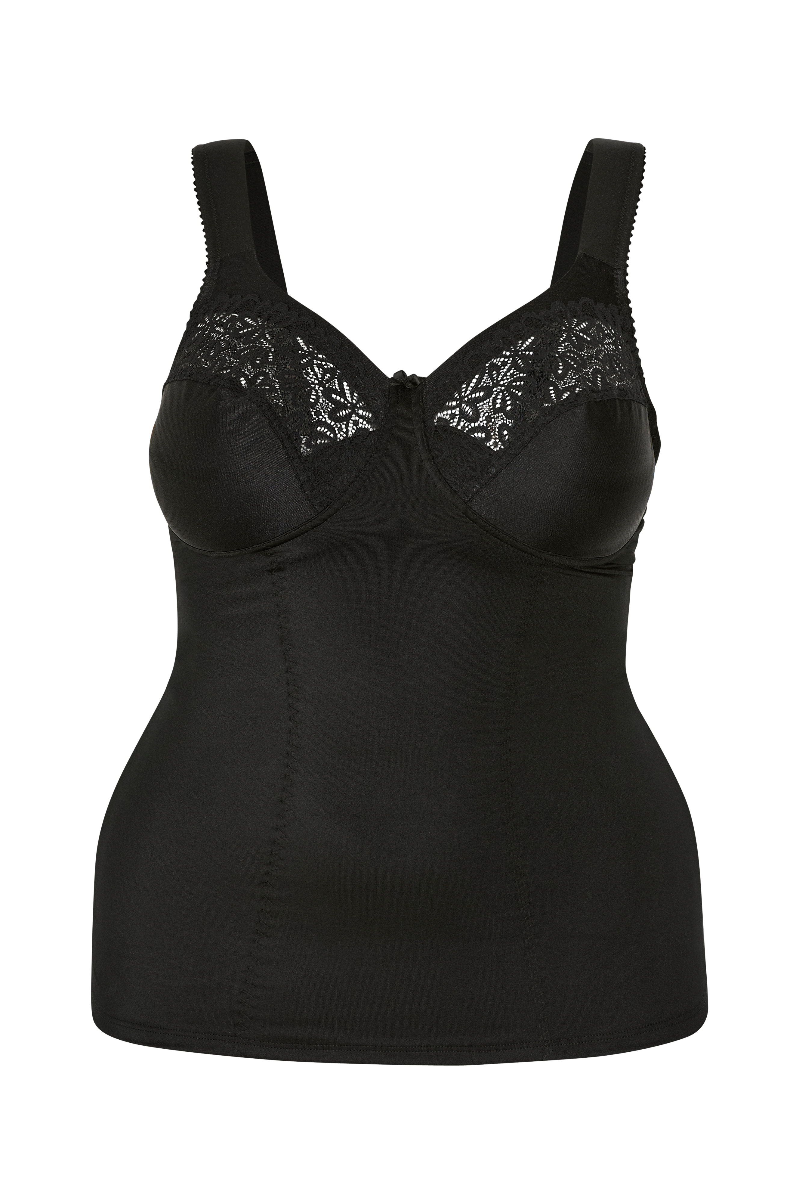 • Linned i blank jersey med formende egenskaber• Skålene har polstring i bunden for at støtte og løfte.• Blonder på toppen• Brede, polstrede skulderstropper, der kan justeres.• Det midterste frontpanel er foret med støttende powermesh