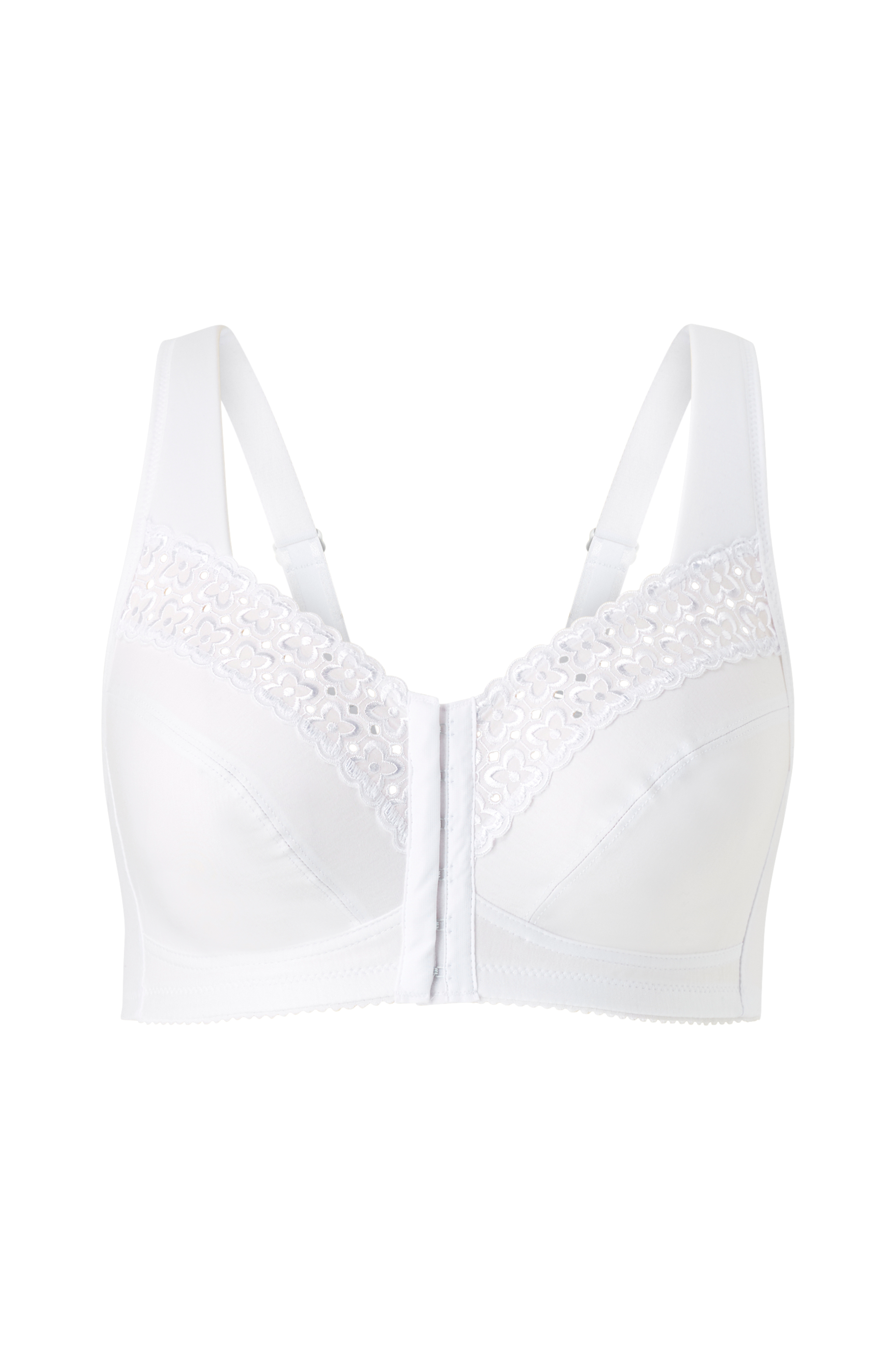 • Bh i strækjersey med blonde• Hægtelukning foran• Skåle uden bøjle med elastisk bånd nederst• Justérbare, forede skulderstropper