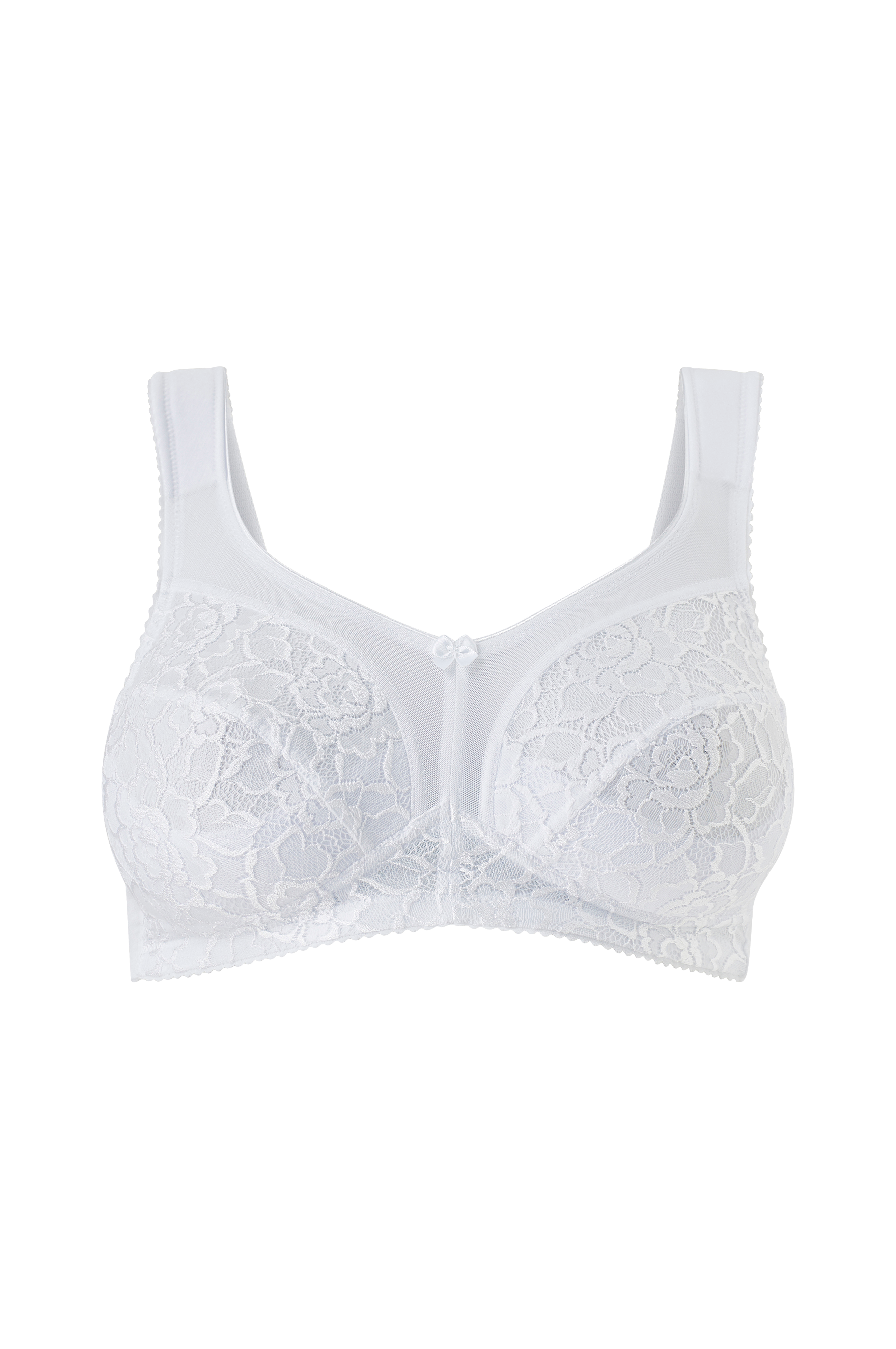 Blød bh Queen fra Miss Mary of Sweden med helskål uden bøjle, som giver god støtte og naturligt rund form. Skåle i stretchblonde forstærket med for i mesh. Underskålen har en vatteret løft- og støttekonstruktion som løfter uden at øge volumen. Brede, polstrede og justerbare skulderremme for ekstra komfort. Bred u-formet ryg i elastisk mesh med justerbar hægte- og mallelukning.