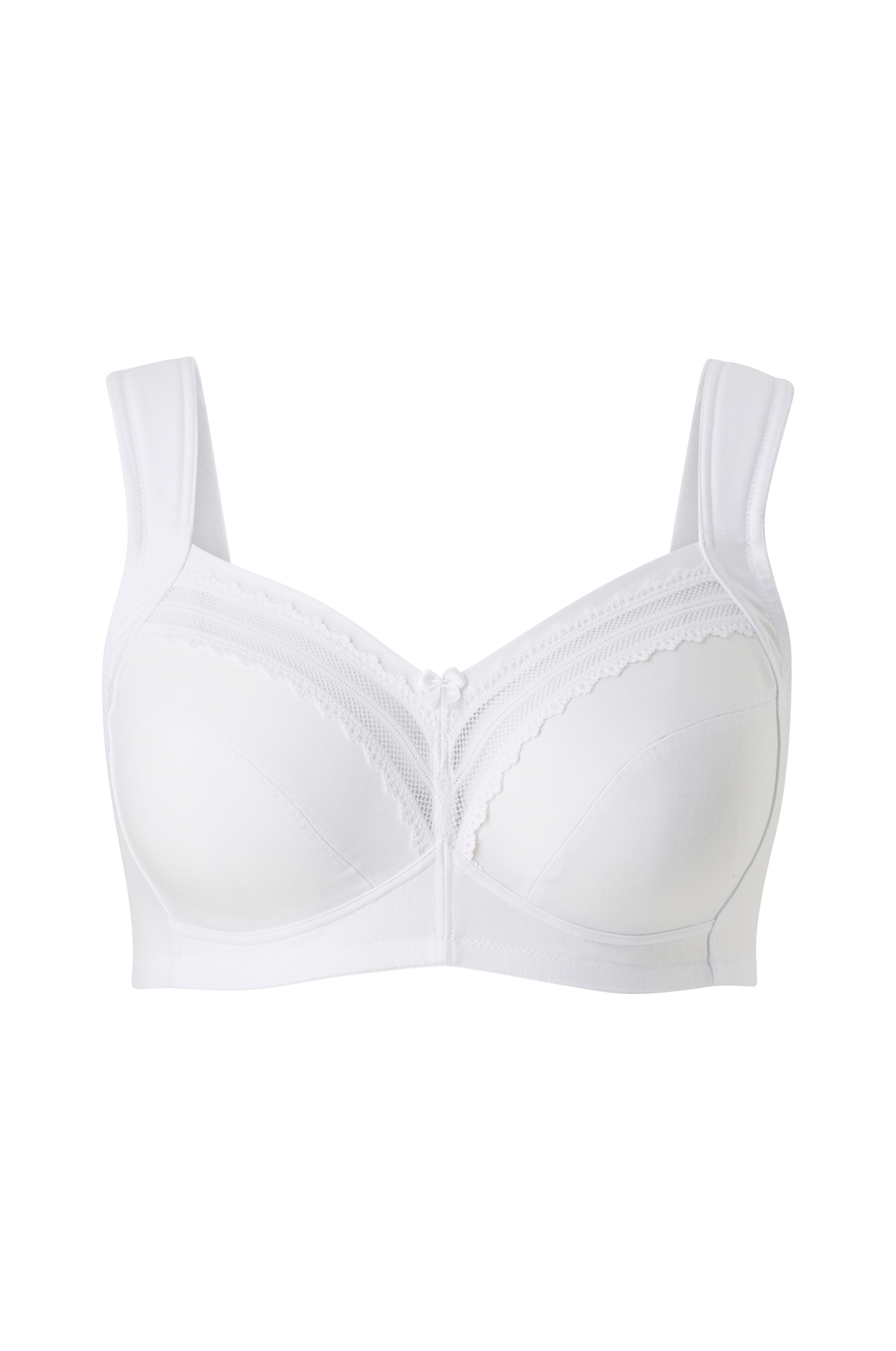 • Bøjleløs bh i bomuld med uforede skåle og blondedetaljer• Justérbare, forede skulderstropper• Flade, diskrete sømme• Elastisk, u-formet ryg med hægtelukning