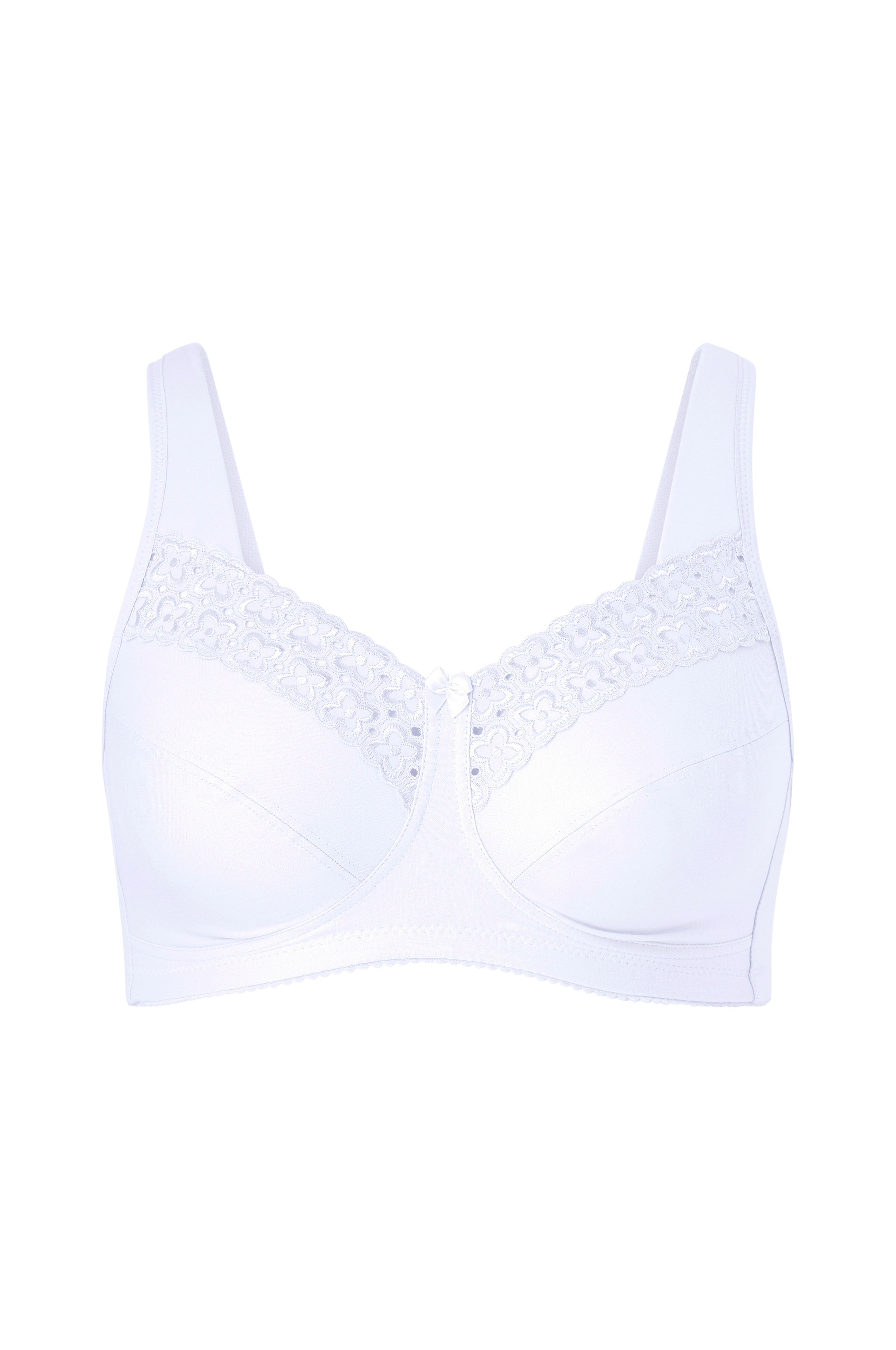 Eksklusivt bomuldsmateriale der giver et ekstra blødt touch. Skålene giver stabil støtte. Elegant broderibånd. Brede vatterede skulderstropper. Dejlig ryg af bomuld/elastan med justerbar hægte/mallelukning. 83% bomuld, 10% elastan, 7% polyamid. Vask 40°.