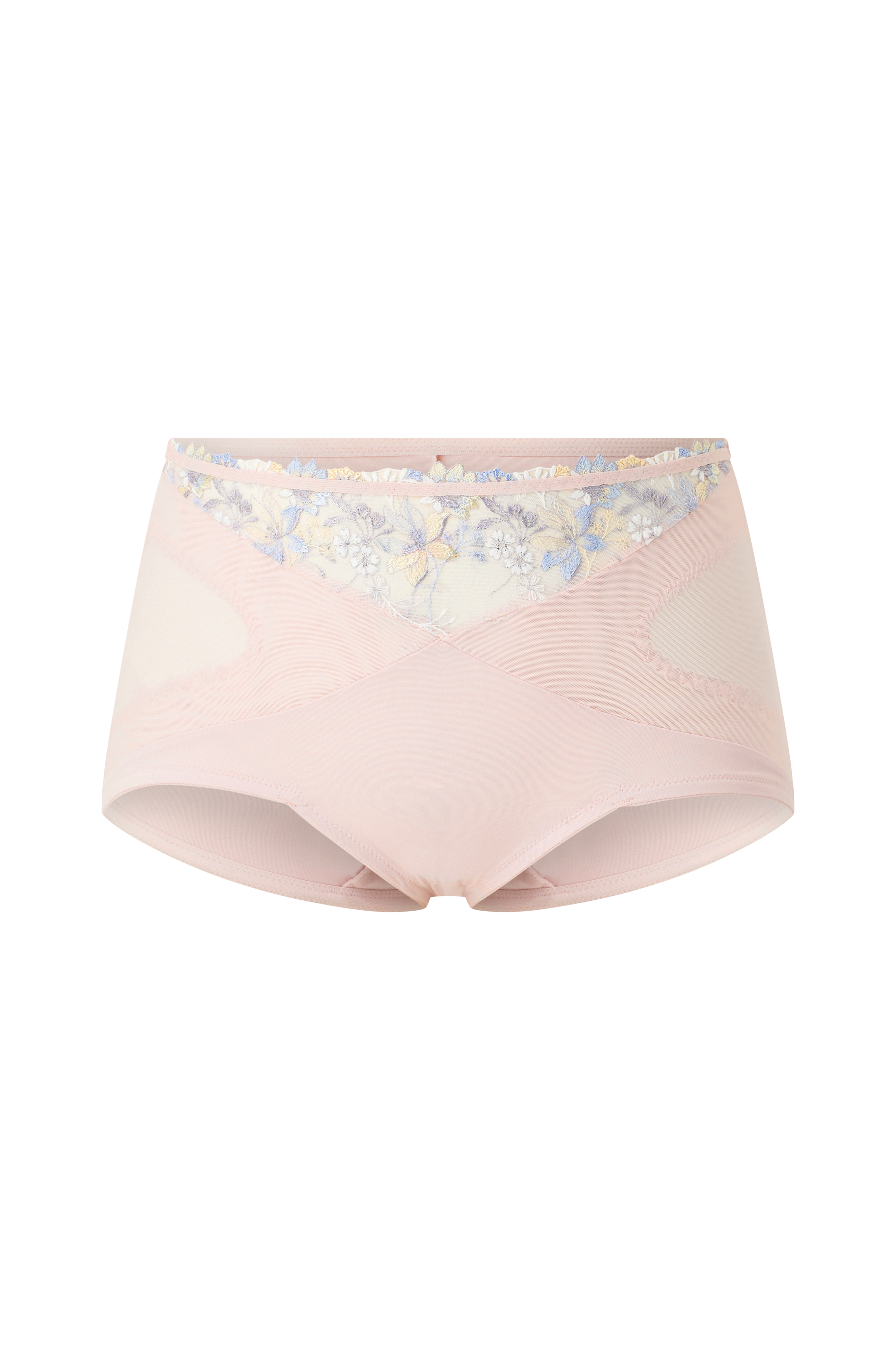 Eksklusiv trusse med glitrende broderi. Designet af den svenske couture-mester Lars Wallin i et eksklusivt samarbejde med Miss Mary. Fremstillet af blødt, elastisk materiale, som er behageligt at have på. Forstærkning foran giver støtte og har en formende effekt. V-formet benåbning foran giver øget komfort, når du bevæger dig. Glat, ensfarvet bagside og bomuldsforet skridt.