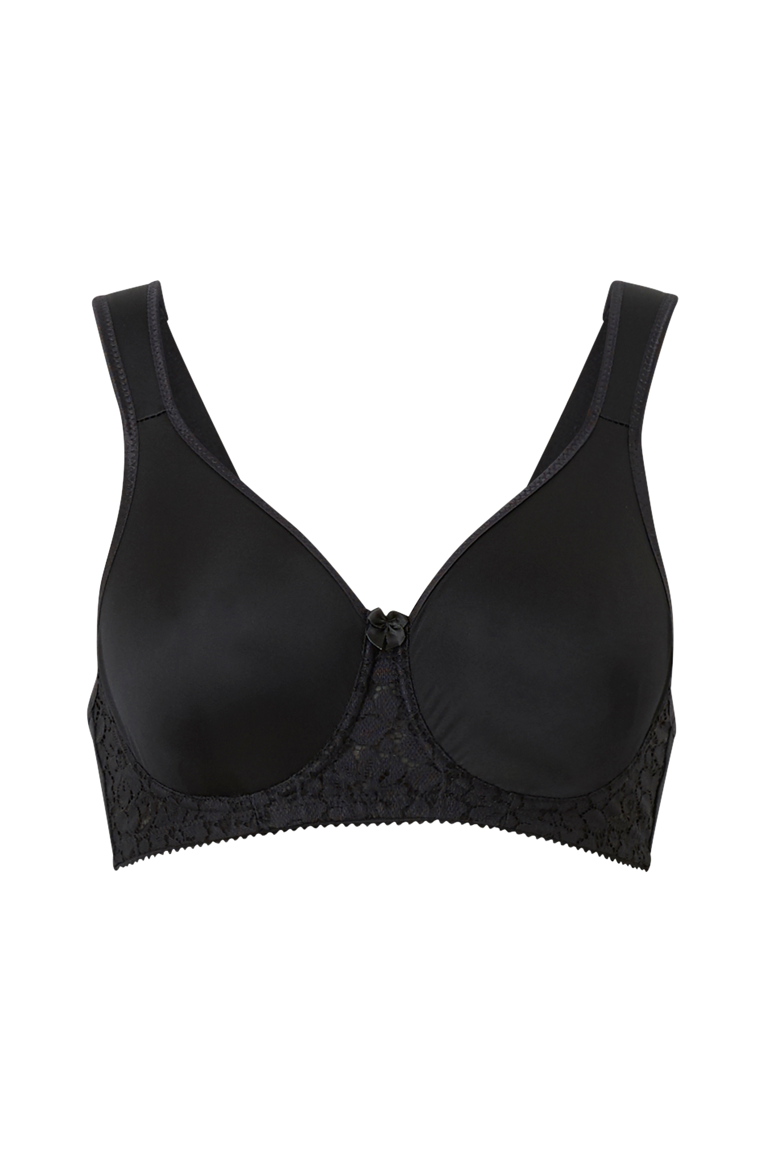 T-shirt-bh med bøjle og uvatteret, formpresset skål som støtter godt og løfter. Blondedetaljer forneden og i siden. Regulerbare, vatterede skulderstropper og justerbar lukning i ryggen.