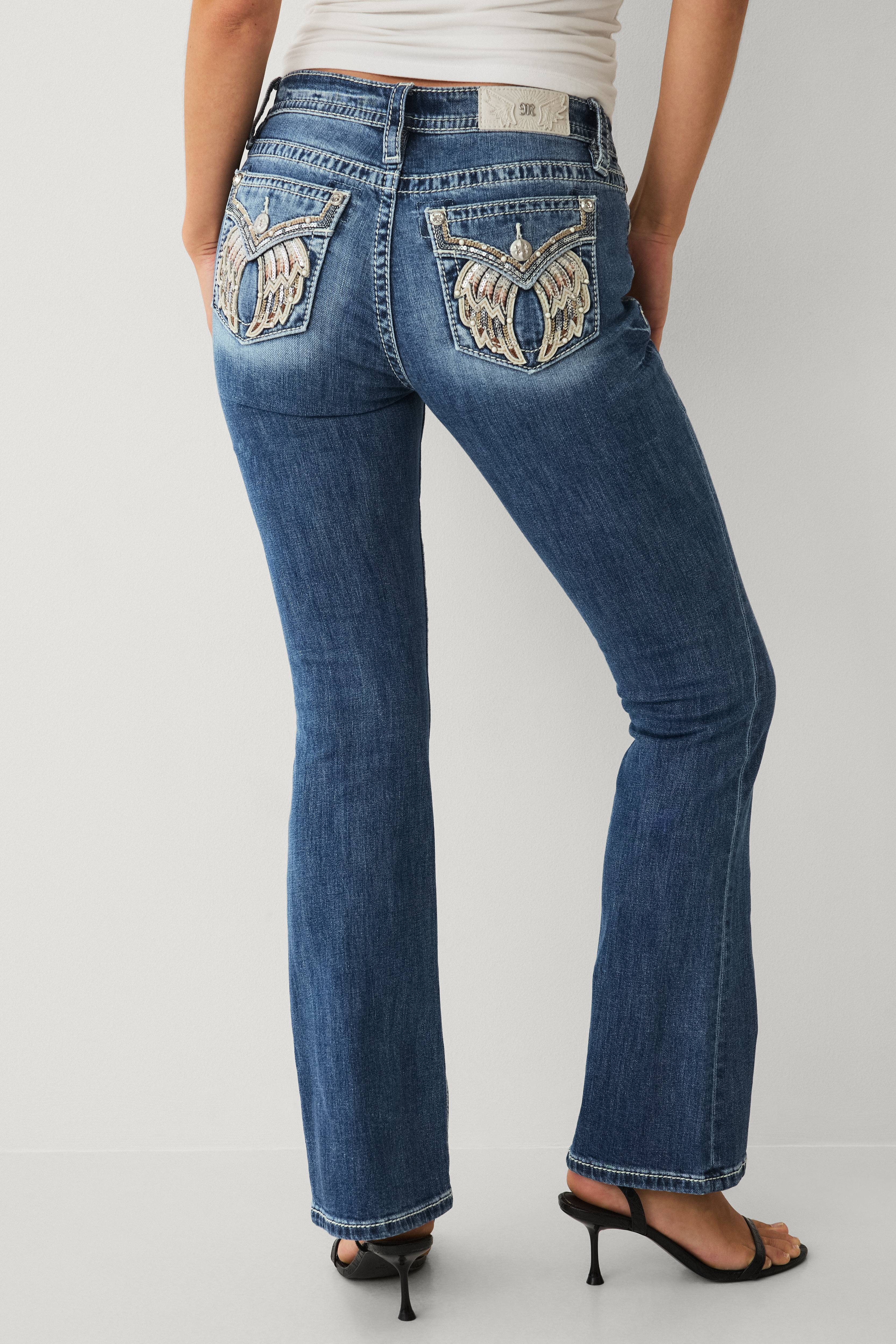 • Bootcut-model• Mediumhøj talje• Bælteløkker• Lynlås- og knaplukning• Femlommemodel• Smal pasform