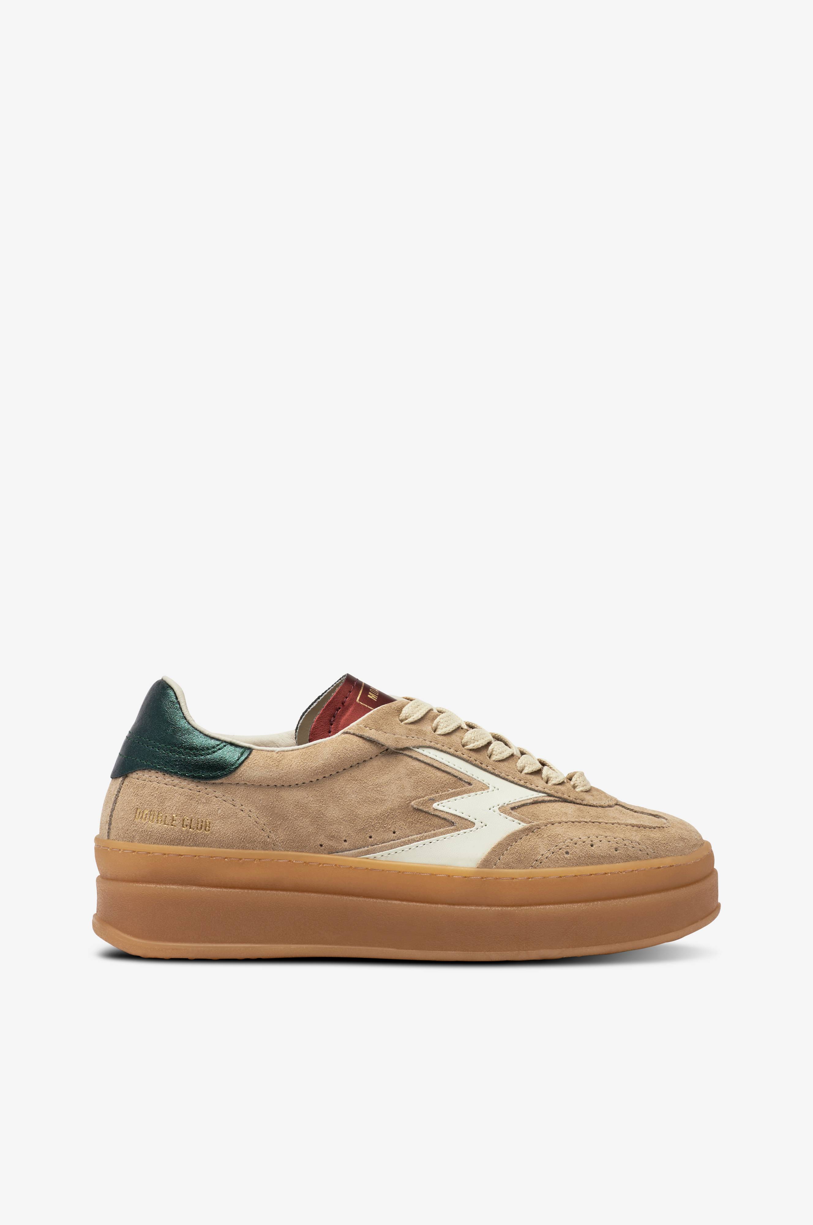 • Kondisko i ruskind• Grønt, skinnende parti bagpå• Platformsål• Tekstilforing• Udtagelig, læderbetrukket indersål• Pasform• Sålhøjde: 4 cm• Lidt smal model