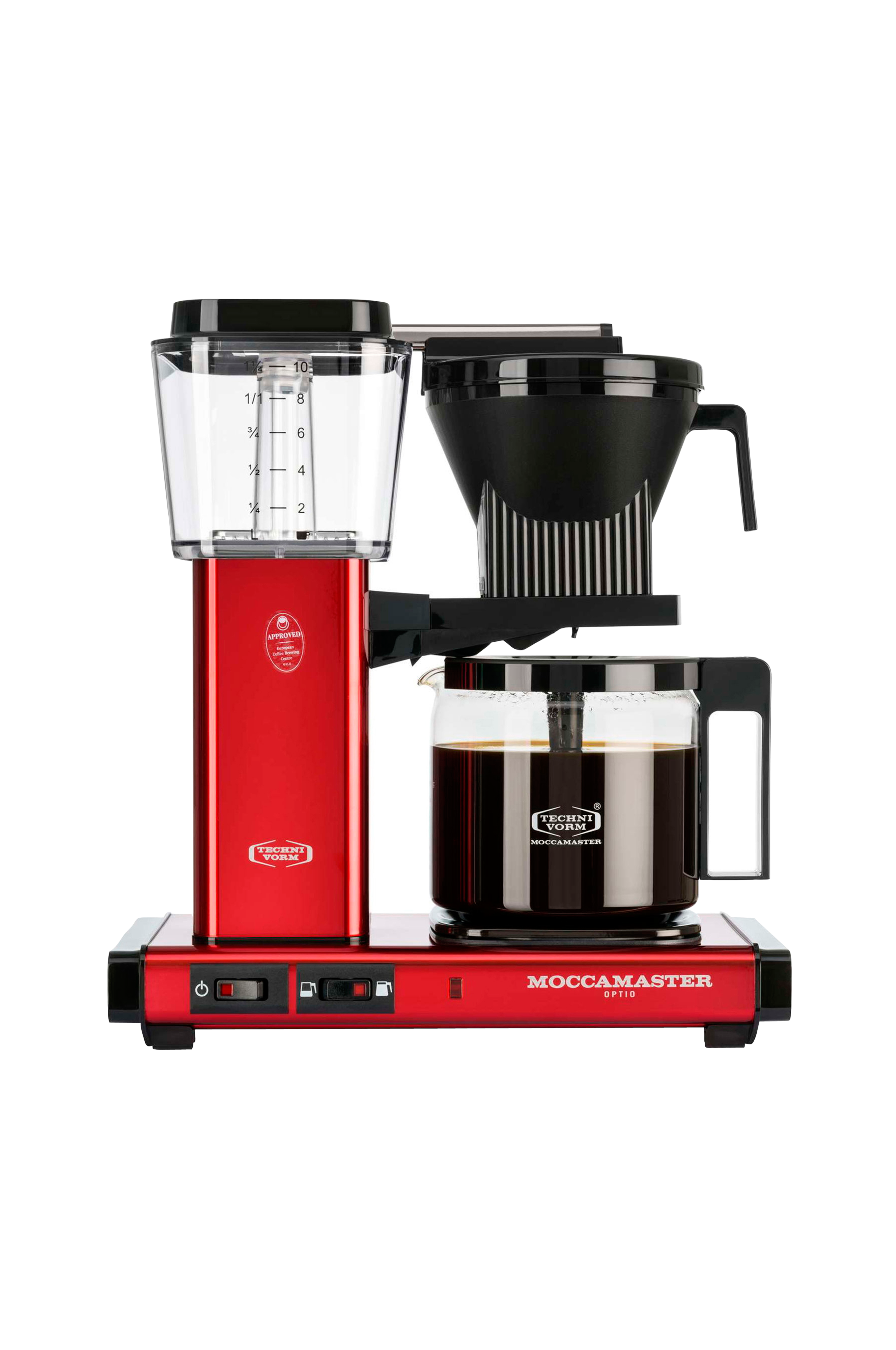 Moccamaster Optio er Moccamasters topmodel med alle tilgængelige funktioner. Den kan brygge op til en kande (1,25 liter) kaffe på bare 6 minutter.