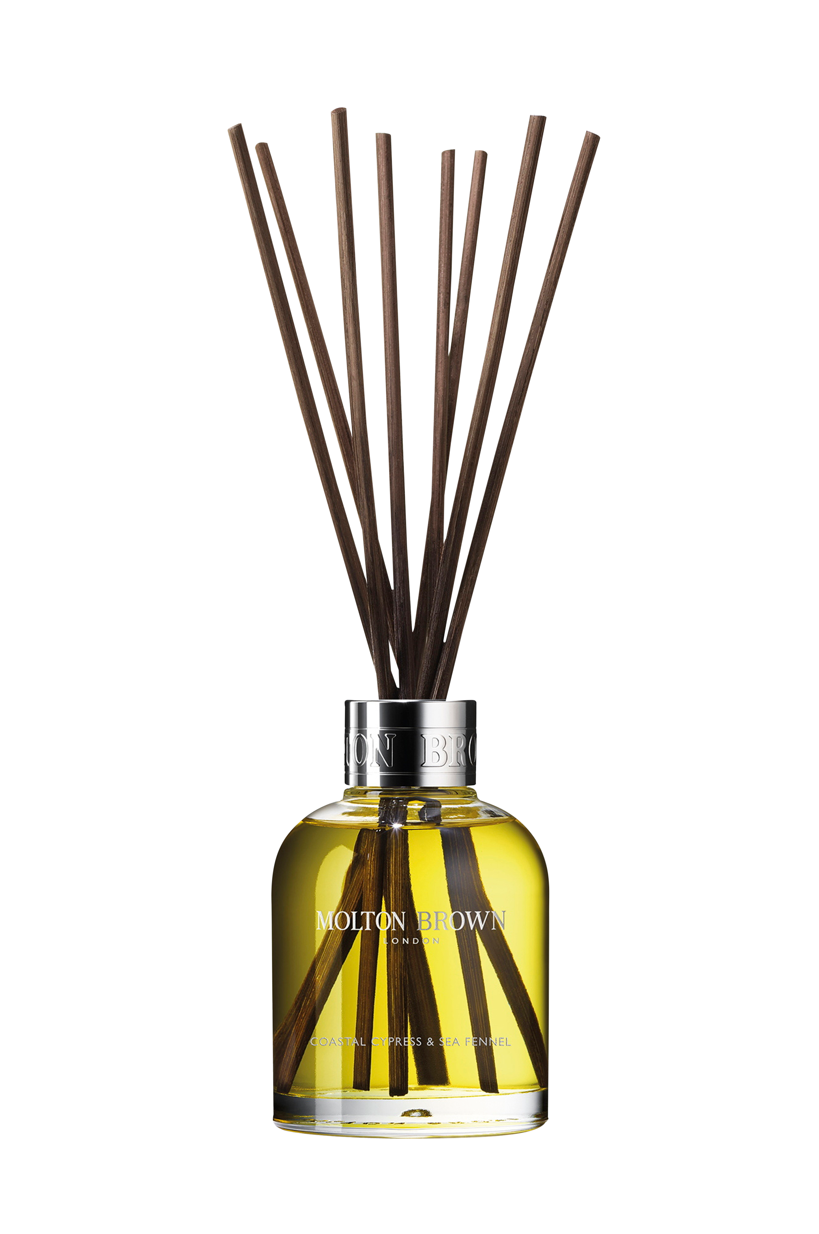 Molton Brown Coastal Cypress & Sea Fennel Aroma Reeds er fyldt med en havinspireret duft af opkvikkende cypres, friske havnoter og kølige krydderier. Molton Browns duftrørsspredere er sofistikerede indretningselementer, der giver dit hjem en symfoni af indbydende dufte. Løft den olfaktoriske atmosfære i dit rum yderligere med Molton Browns matchende duftlys.