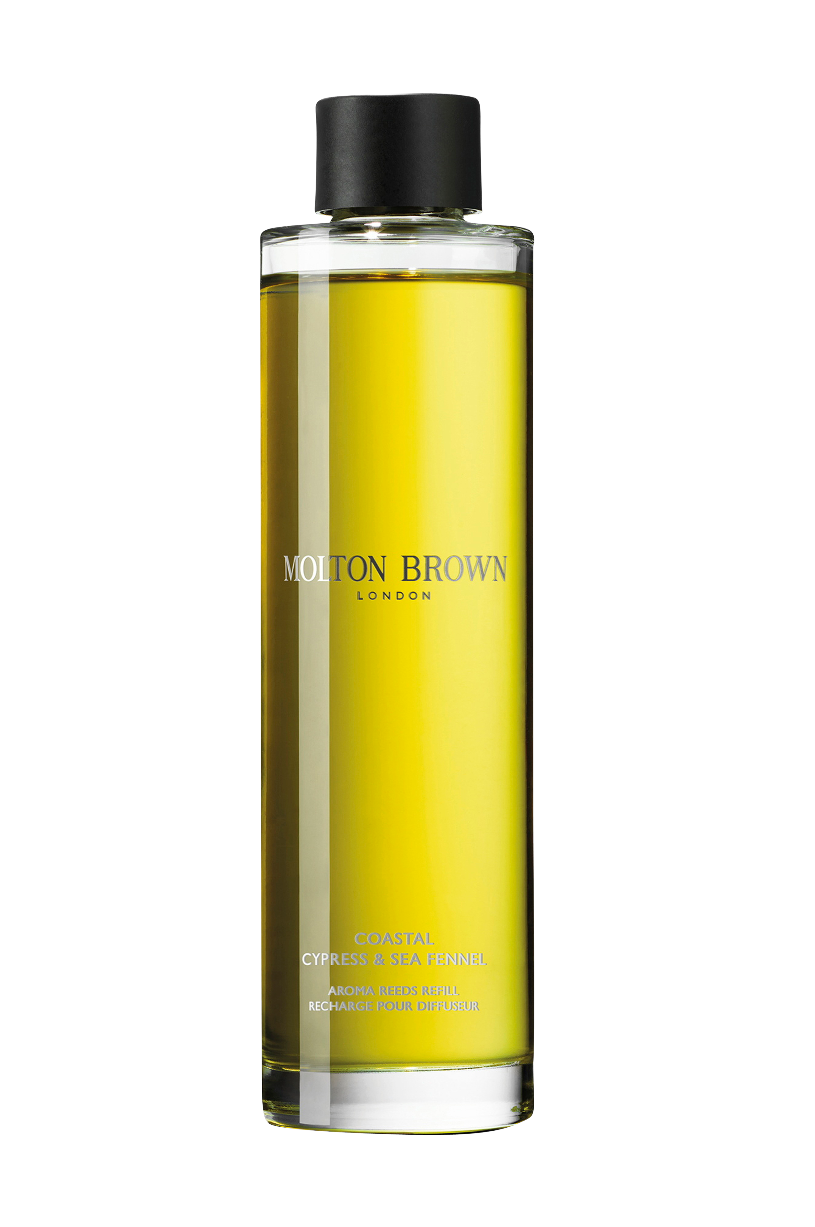 Brug Molton Brown Coastal Cypress & Sea Fennel Aroma Reeds Refill til at fylde olie på din diffusorflaske, og bliv ved med at nyde den havinspirerede duft af opkvikkende cypres, friske havnoter og kølige krydderier. Molton Browns aromadiffusorer er sofistikerede indretningselementer, der giver dit hjem en symfoni af indbydende dufte. Løft den olfaktoriske atmosfære i dit rum yderligere med Molton Browns matchende duftlys.