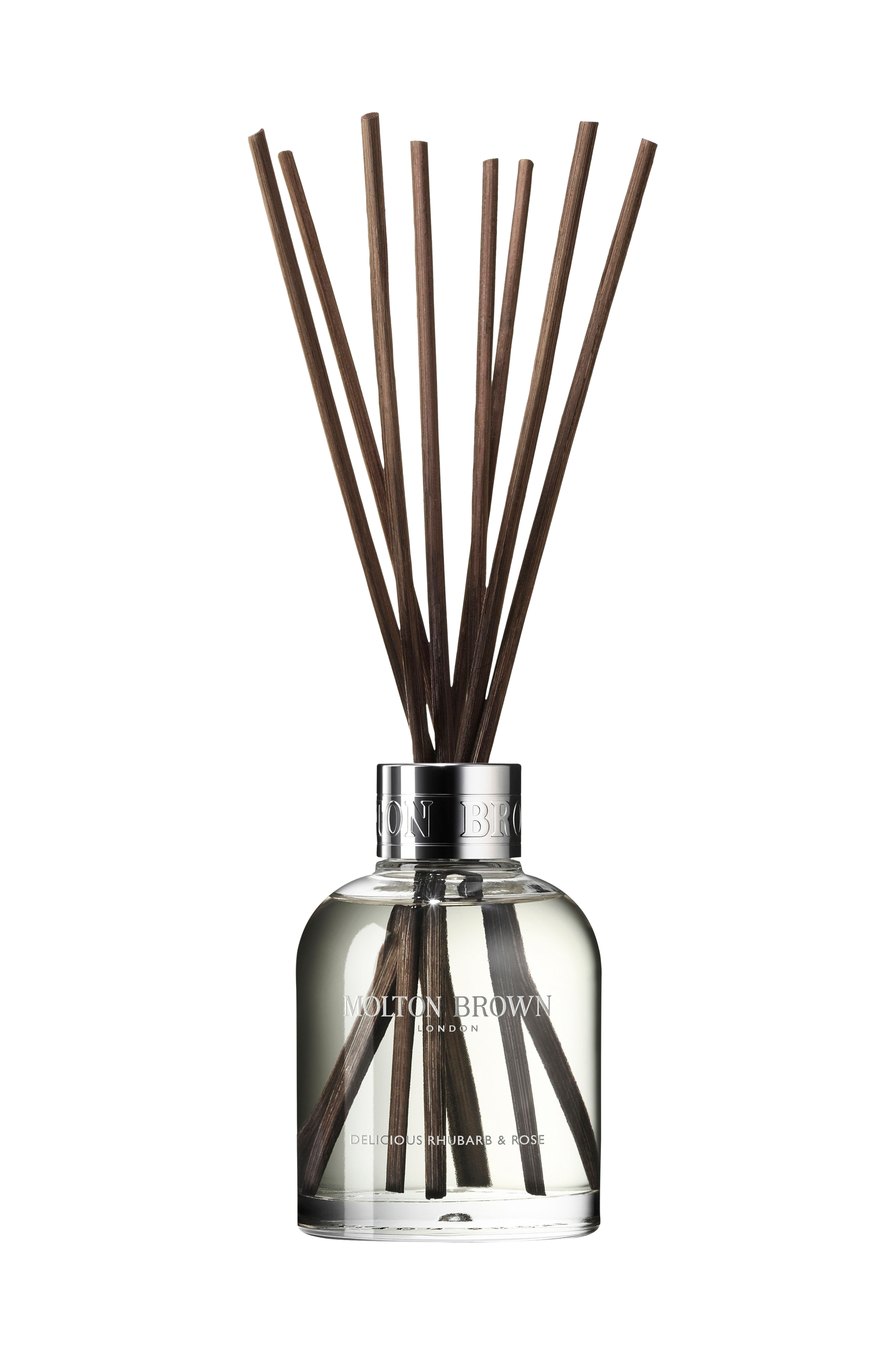 Molton Brown Delicious Rhubarb & Rose Aroma Reeds er fyldt med den uimodståelige duft af livlig rabarber og cremet vanilje - med et delikat twist af lys grapefrugt. Molton Browns duftrørsspredere er sofistikerede indretningselementer, der giver dit hjem en symfoni af indbydende dufte. Løft den olfaktoriske atmosfære i dit rum yderligere med Molton Browns matchende duftlys.