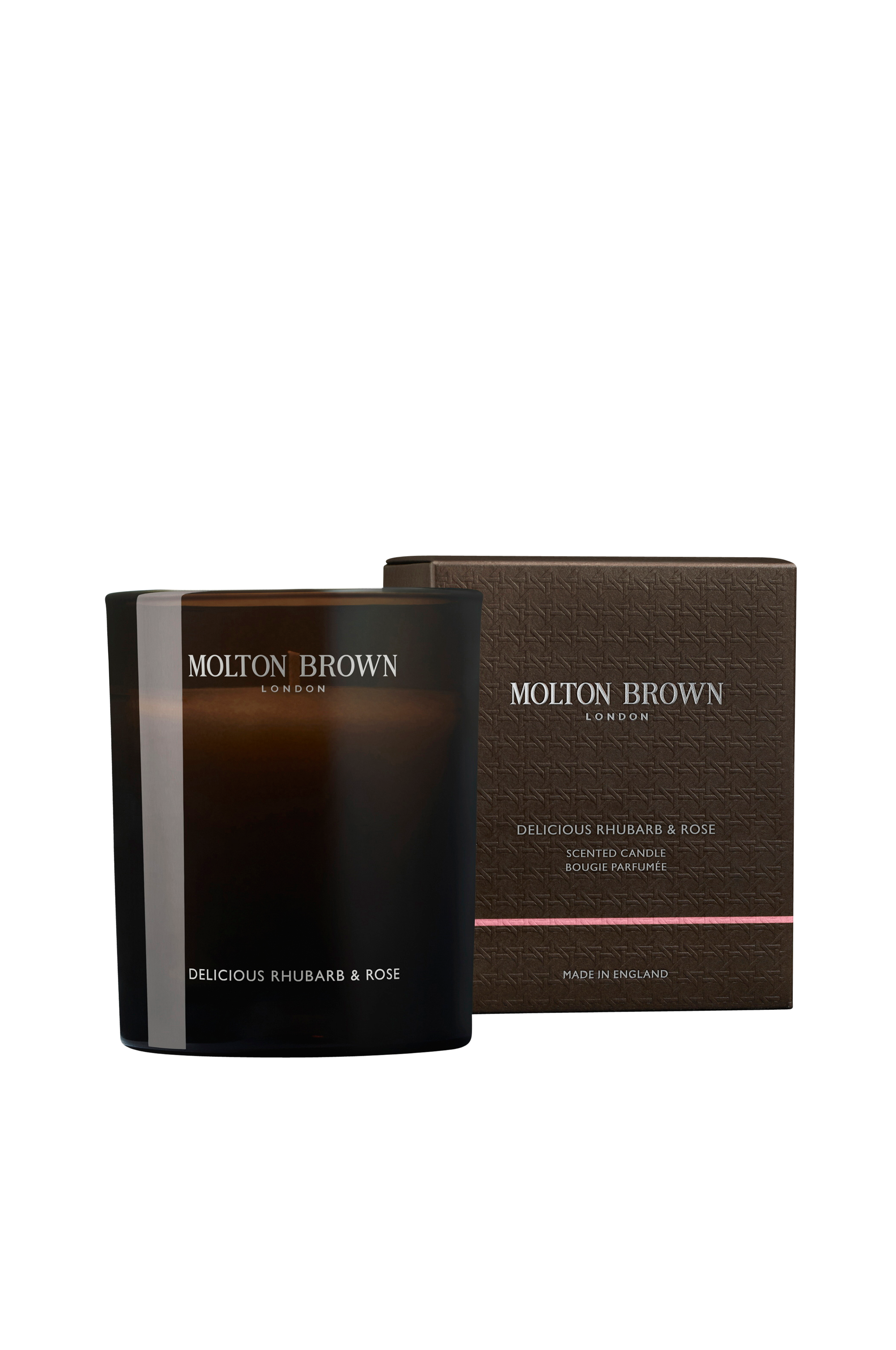 Fyld dit hjem med de aromaer og dufte, du elsker. Molton Brown Delicious Rhubarb & Rose Signature Candle er den ultimative overdådige indretning og vil friste dine sanser med en lækker kombination af fløjlsbløde roser, forfriskende rabarber og cremet vanilje. Det er lavet af bæredygtig mineralvoks for den fineste forbrænding. Løft den olfaktoriske atmosfære i dit rum yderligere med Molton Browns matchende aroma-rør.