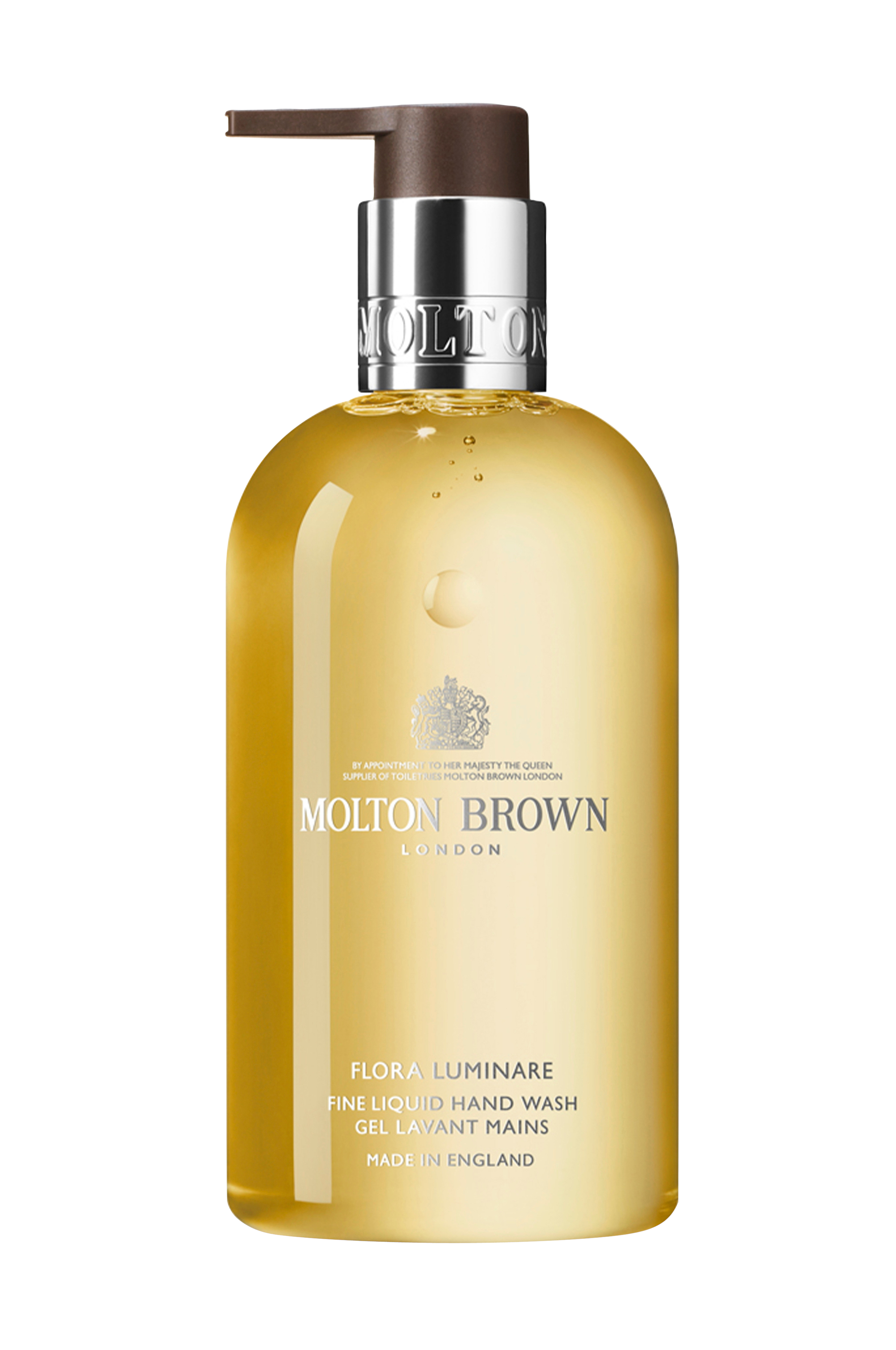 Molton Brown Flora Luminare Fine Liquid Hand Wash er en forfriskende og fugtgivende flydende sæbe, der giver en luksuriøs og overbærende rengøringsoplevelse med strålende noter af funklende orange blomster, lysende jasmin og blød vanilje. Brug den sammen med Molton Browns matchende håndlotion for at forstærke den hvide blomsterduft.