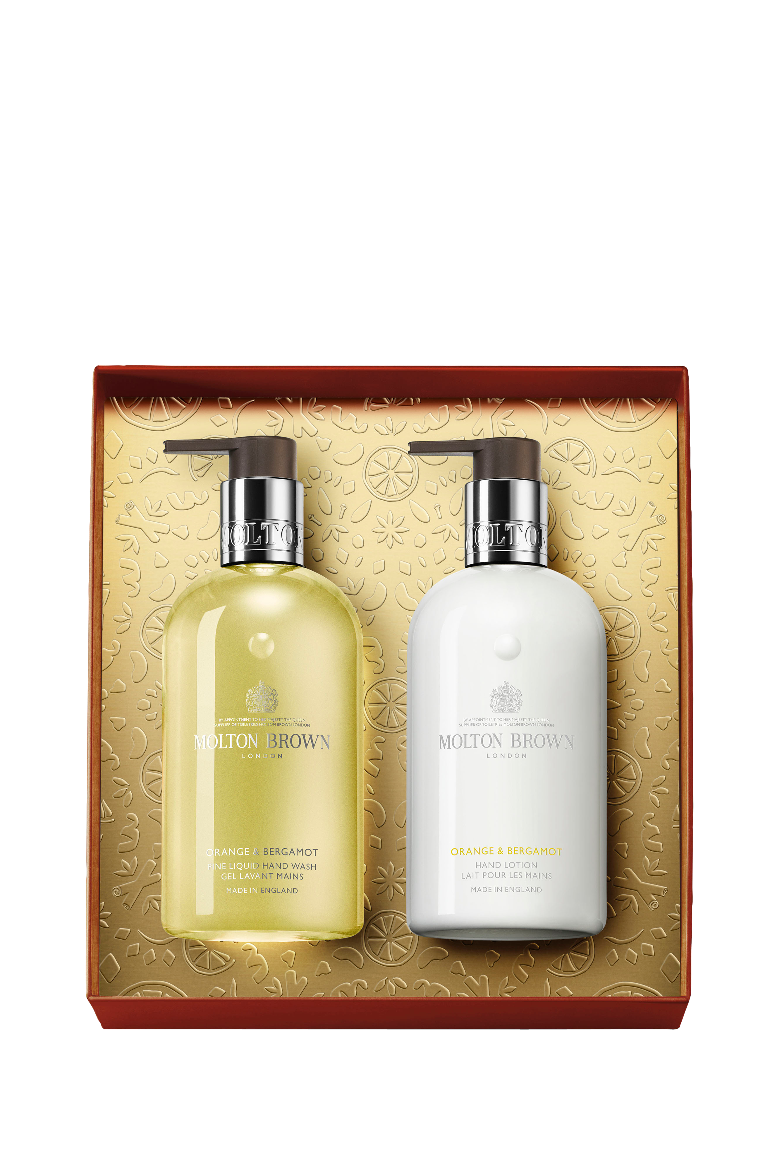 Håndplejesæt fra Molton Brown med håndsæbe og håndlotion med duft af appelsin og blomstrende neroli fra Sevilla.