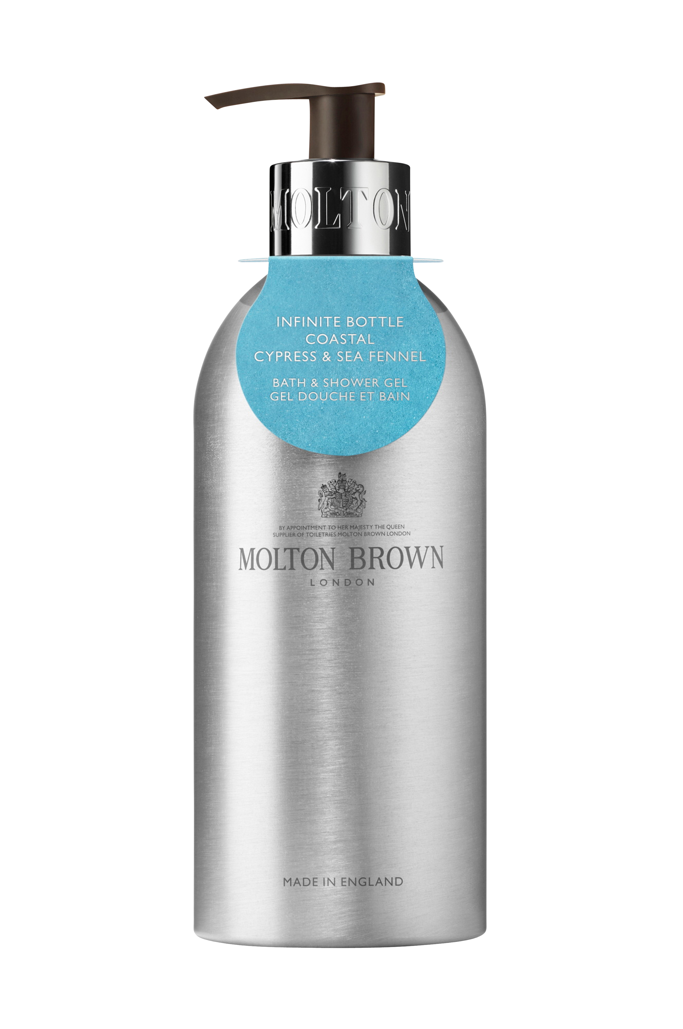 Molton Brown Infinite Bottle Coastal Cypress & Sea Fennel Bath & Shower Gel er en dejlig aromatisk body wash i en bæredygtig, genanvendelig flaske af 100 % genanvendt aluminium. Denne forfriskende bade- og brusegelé med marine noter af australsk havfennikel og saltet cypres tilføjer lidt luksus til dit baderitual og fremkalder den friske fornemmelse af en havbrise. Den renser huden og efterlader den med en delikat duft. Brug den sammen med Molton Browns matchende Body Lotion for at få en komplet duftoplevelse.