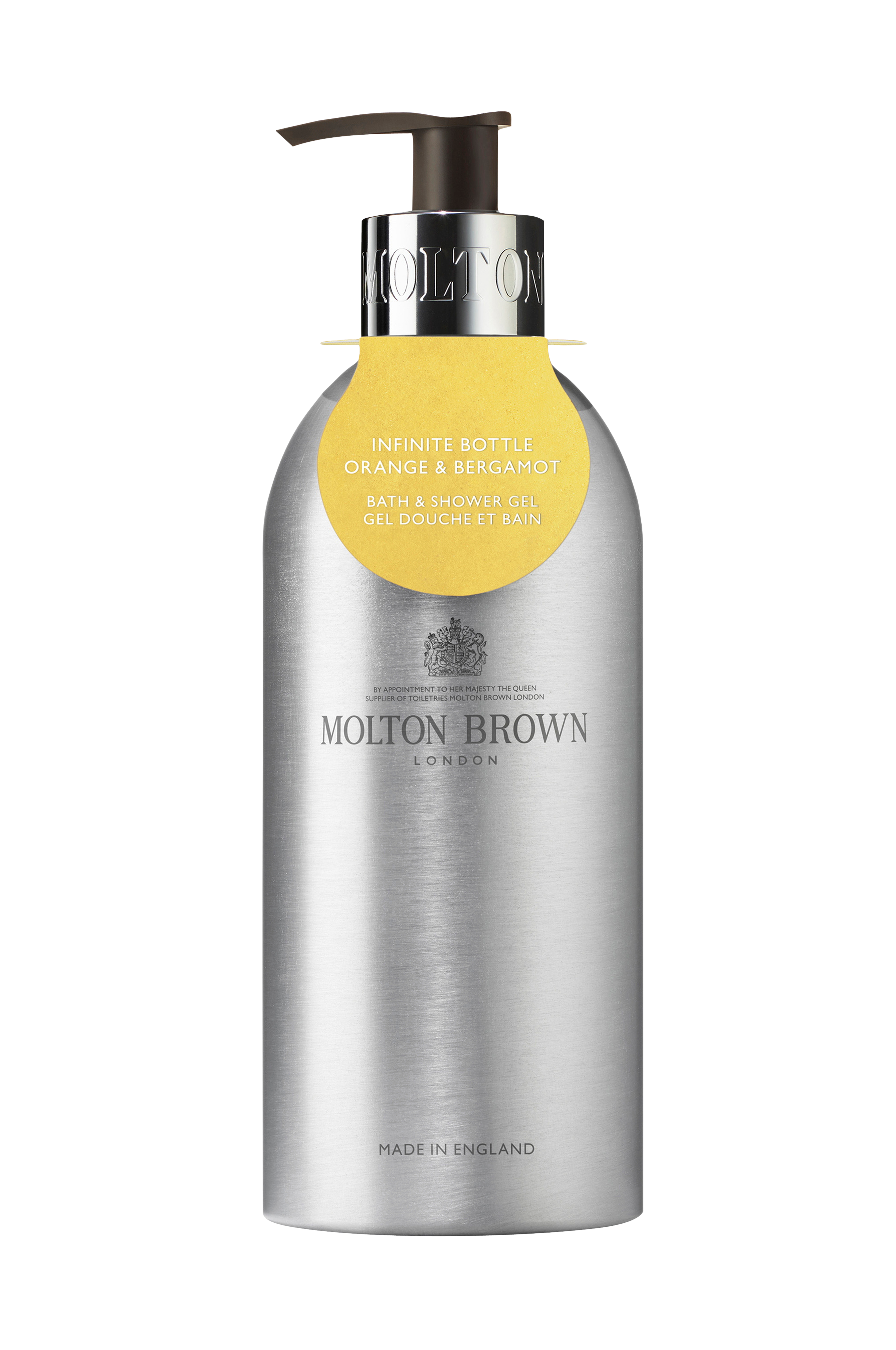 Molton Brown Infinite Bottle Orange & Bergamot Bath & Shower Gel er en ikonisk bade- og brusegelé, der renser huden og efterlader den delikat duftende. Den er fyldt med livlige, opløftende noter af frisk appelsin, blomstrende neroli og vedvarende moskus. Brug den sammen med Molton Browns matchende Body Lotion for en komplet duftoplevelse.