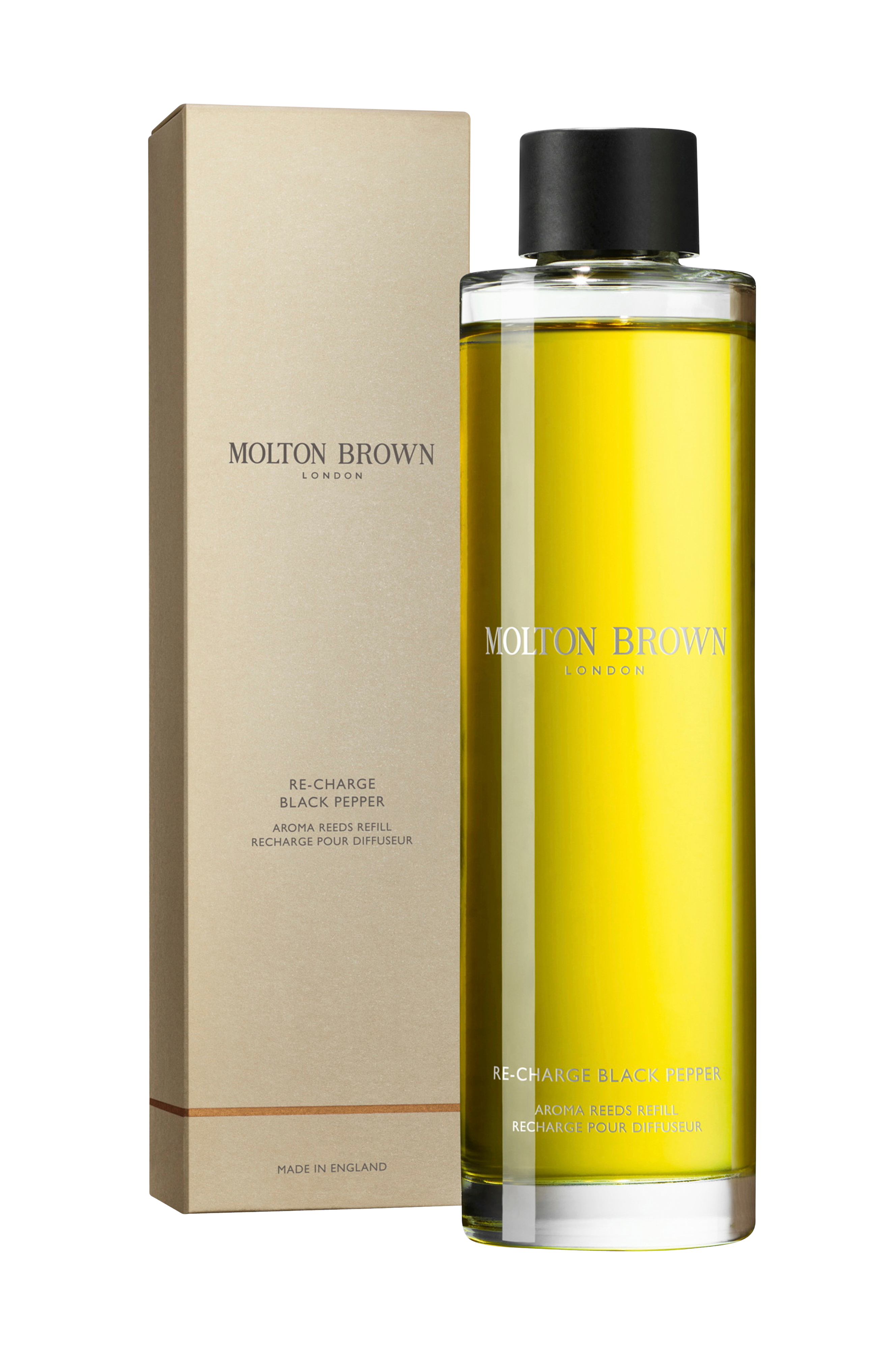 Brug Molton Brown Re-Charge Black Pepper Aroma Reeds Refill til at fylde olie på din diffusorflaske, og bliv ved med at nyde den friske, krydrede duft af citron og sort peber. Molton Browns aromadiffusorer er sofistikerede indretningselementer, der giver dit hjem en symfoni af indbydende dufte. Løft den olfaktoriske atmosfære i dit rum yderligere med Molton Browns matchende duftlys.