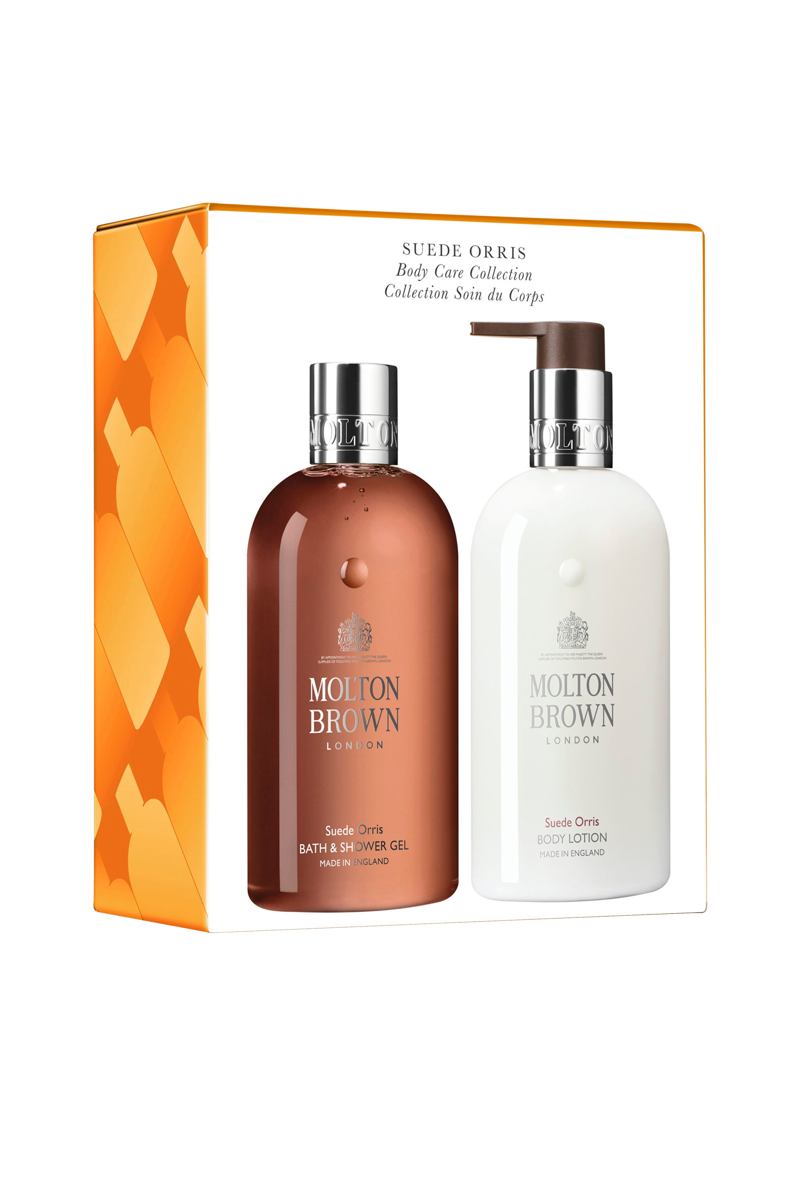 Molton Browns shower gel og lotion Suede Orris er et baderitual som passer til de royale. Lad sanserne blive omfavnet i et slør af dyrebar toscansk irisrod, frisk mandarin og luksuriøst cedertræ.