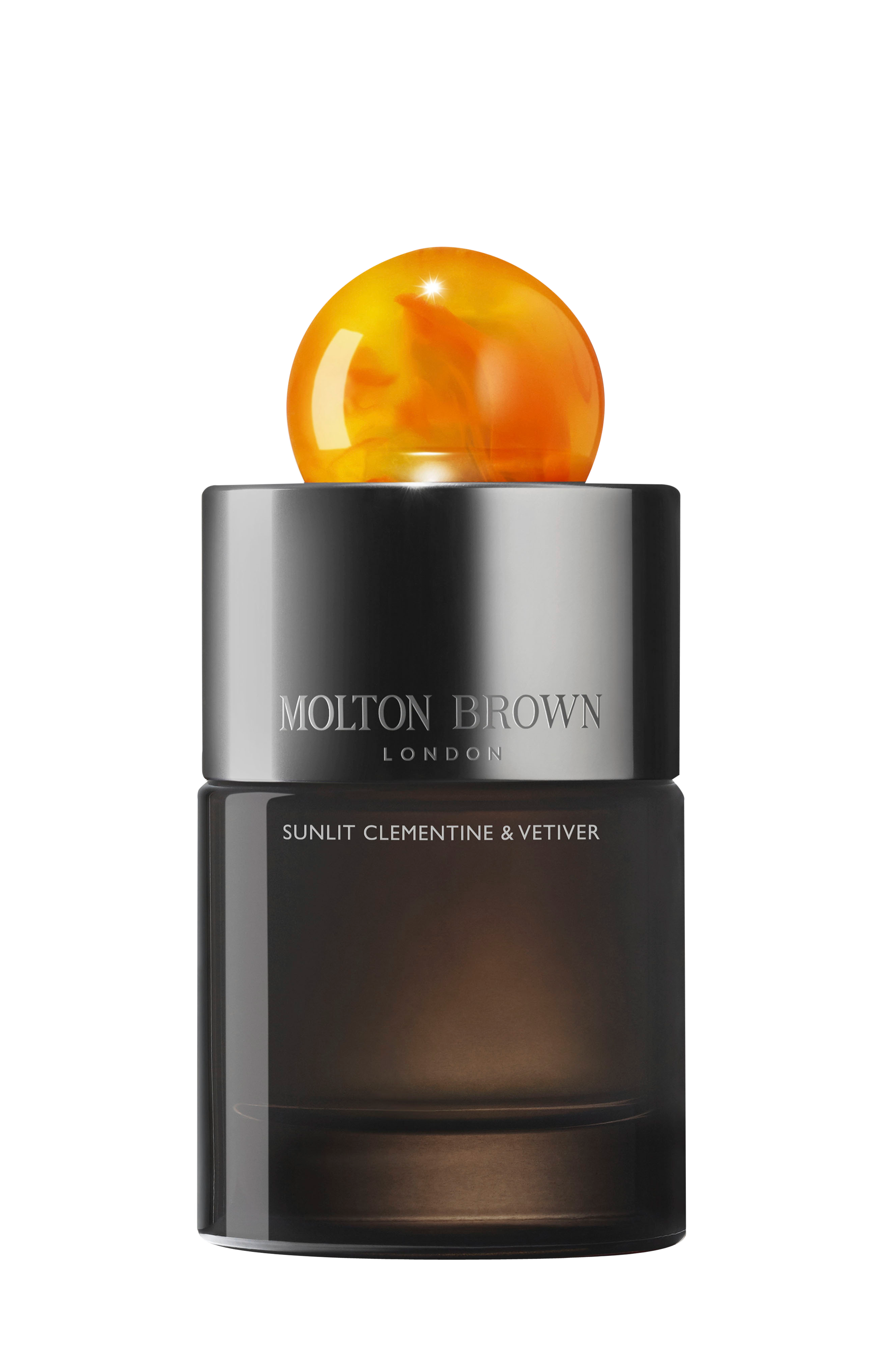 Molton Brown Sunlit Clementine & Vetiver EdP er en sofistikeret, sommerlig Eau de Parfum. Livlige noter af klementin og mandarin efterfølges af et fløjlsblødt hjerte af iris absolut, en base af ruskind og træagtige noter og en røget-jordagtig signaturnote af bæredygtig, fyldig Bourbon-vetiver. Bourbon-vetiver er en type vetiver fra Madagaskar. Dens æteriske olie er særlig unik og afslører en mere røget facet end den mere udbredte haitianske variant. Duften findes i en smuk glasflakon, som man kan samle på, med en unik kugleformet harpikshætte.