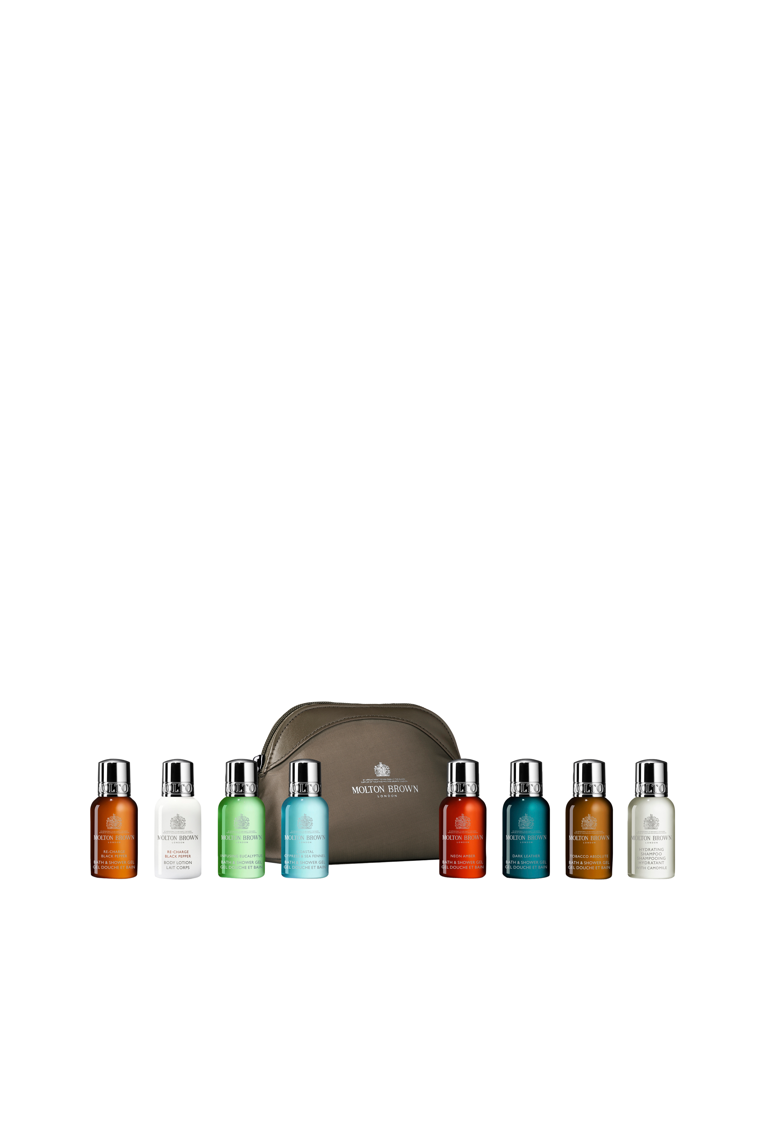 Fyld vores signaturrejsetaske med dine favoritter blandt de luksuriøse miniatureprodukter, så du har lidt Molton Brown-dekadence med dig, uanset hvor dine eventyr bringer dig hen.