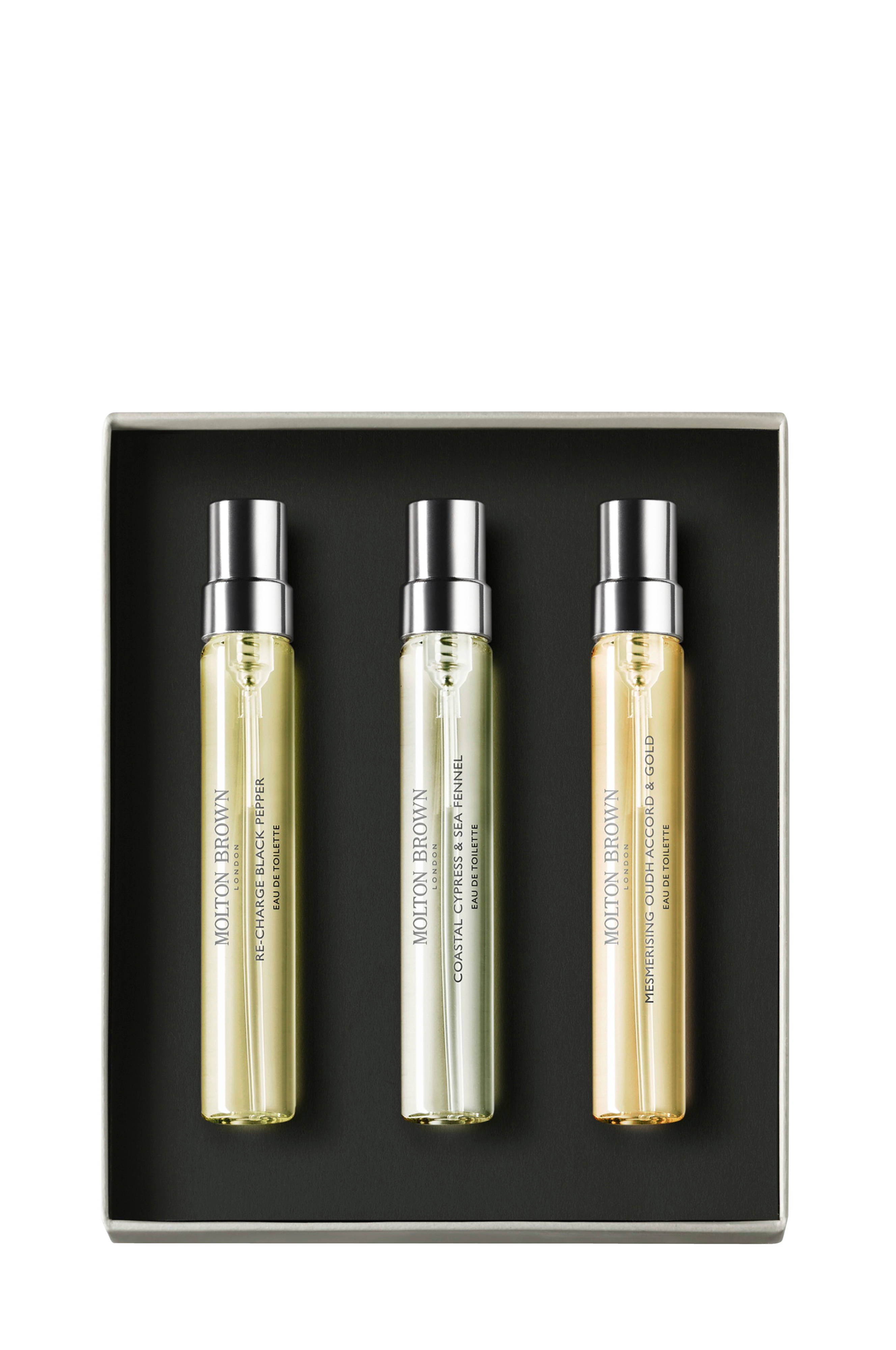 Et sæt skabt til at opdage dufte med tre træagtige og aromatiske Eau de Toilette. Tag dine sanser med til nye horisonter med disse distinkte dufte, som fornyer og løfter. Tag den anderledes vej med den krydrede Re-charge Black Pepper, skyl sanserne med den saltede kollision af Coastal Cypress & Sea Fennel eller kig ind i de berusende skove med Mesmerising Oudh Accord & Gold.
