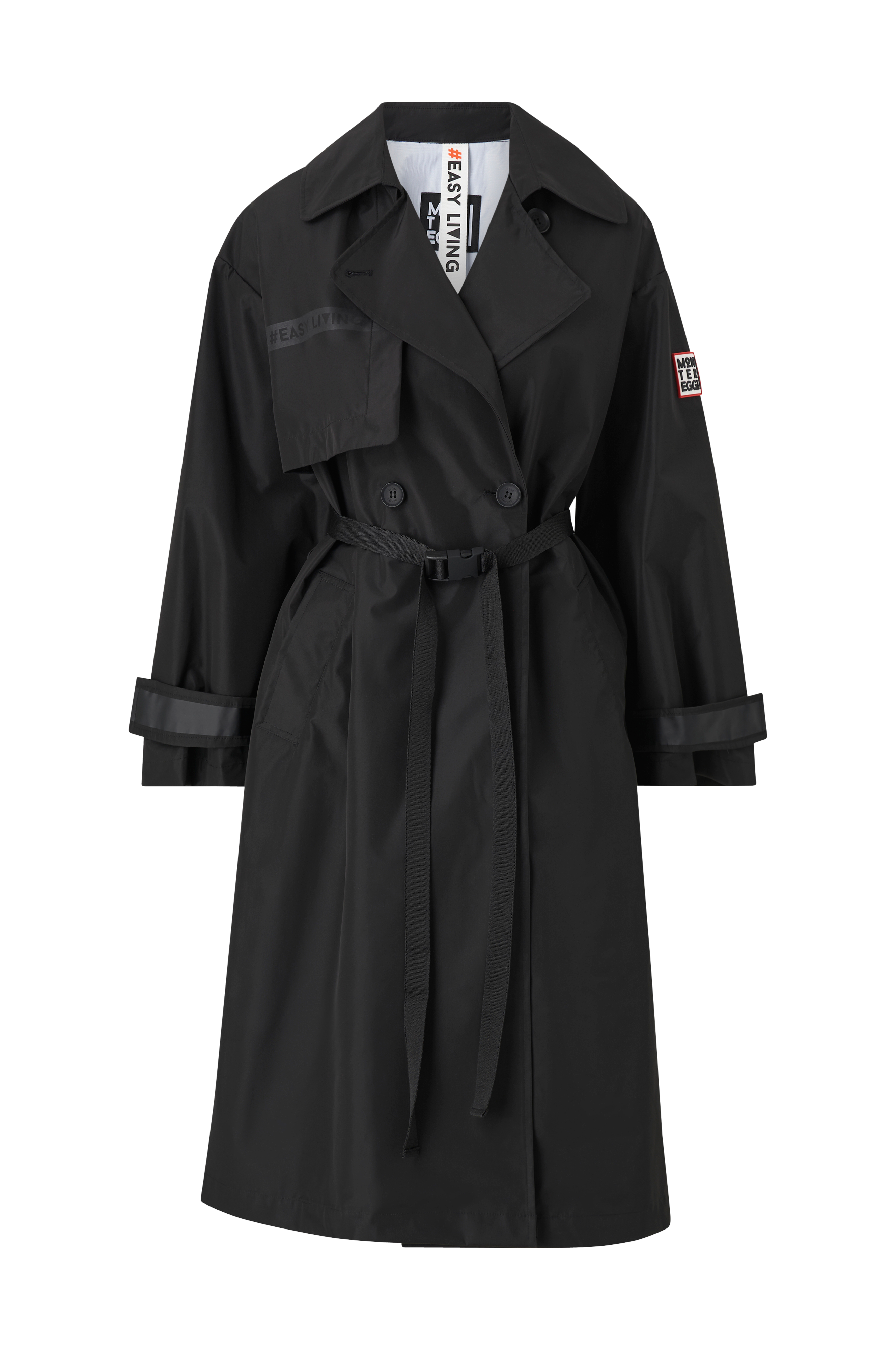 • Tapede sømme• Aftageligt bælte• Dobbeltbrystet model• Sidelommer• Justérbar vidde ved manchetterne med trykknapper• Slids bagpå• Løstsiddende linning• Uforet• Længde: 113 cm i størrelse 42