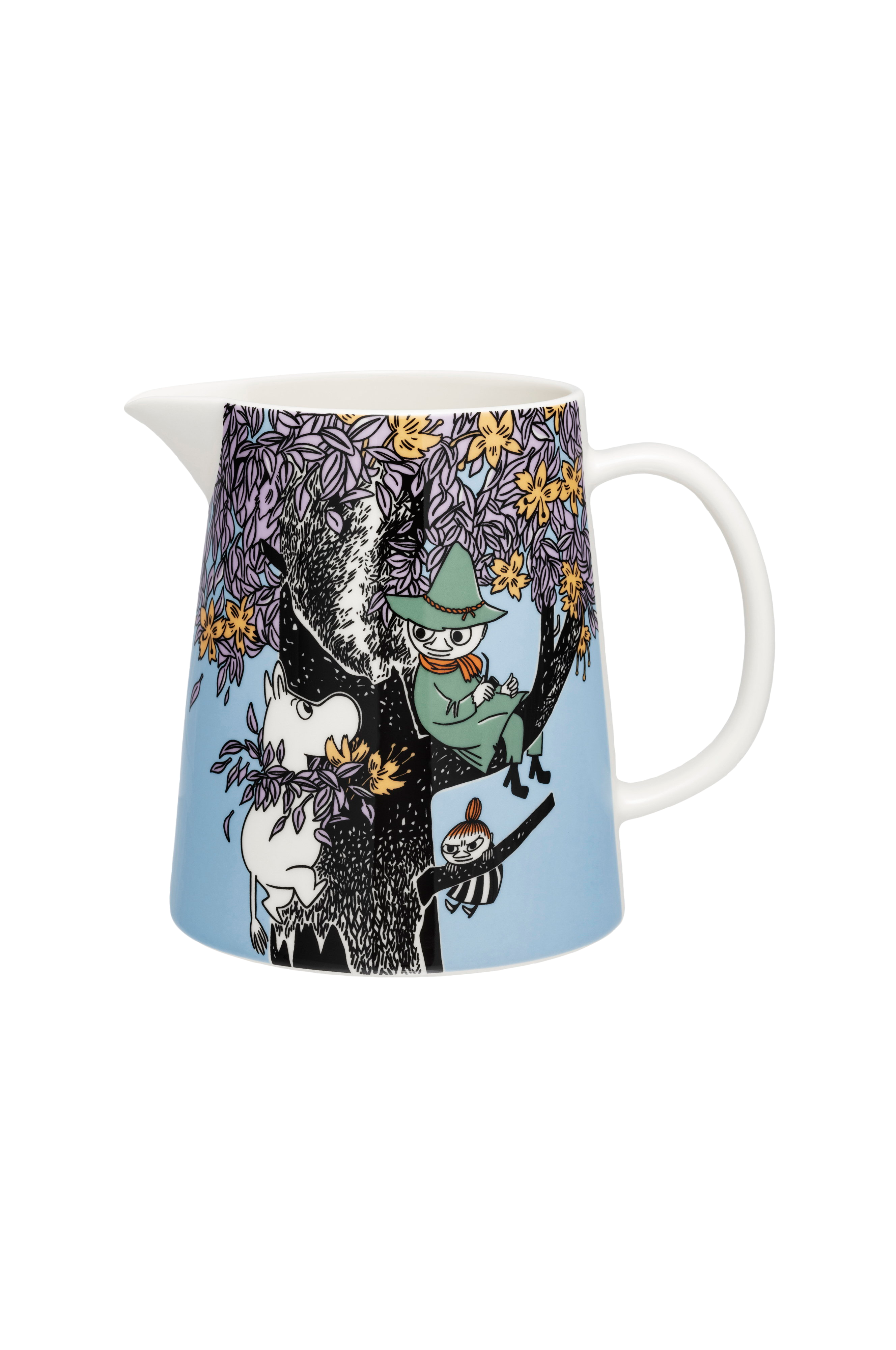 Moomin 80-kollektionen fejrer de værdier, der forbinder os med Mumin-historierne - kærlighed, venskab og accept. Kollektionen hylder den eventyrlystne trio bestående af Snusmumrikken, Mumitrolden og Lille My. Moomin Arabia kande 1L, Venner for evigt