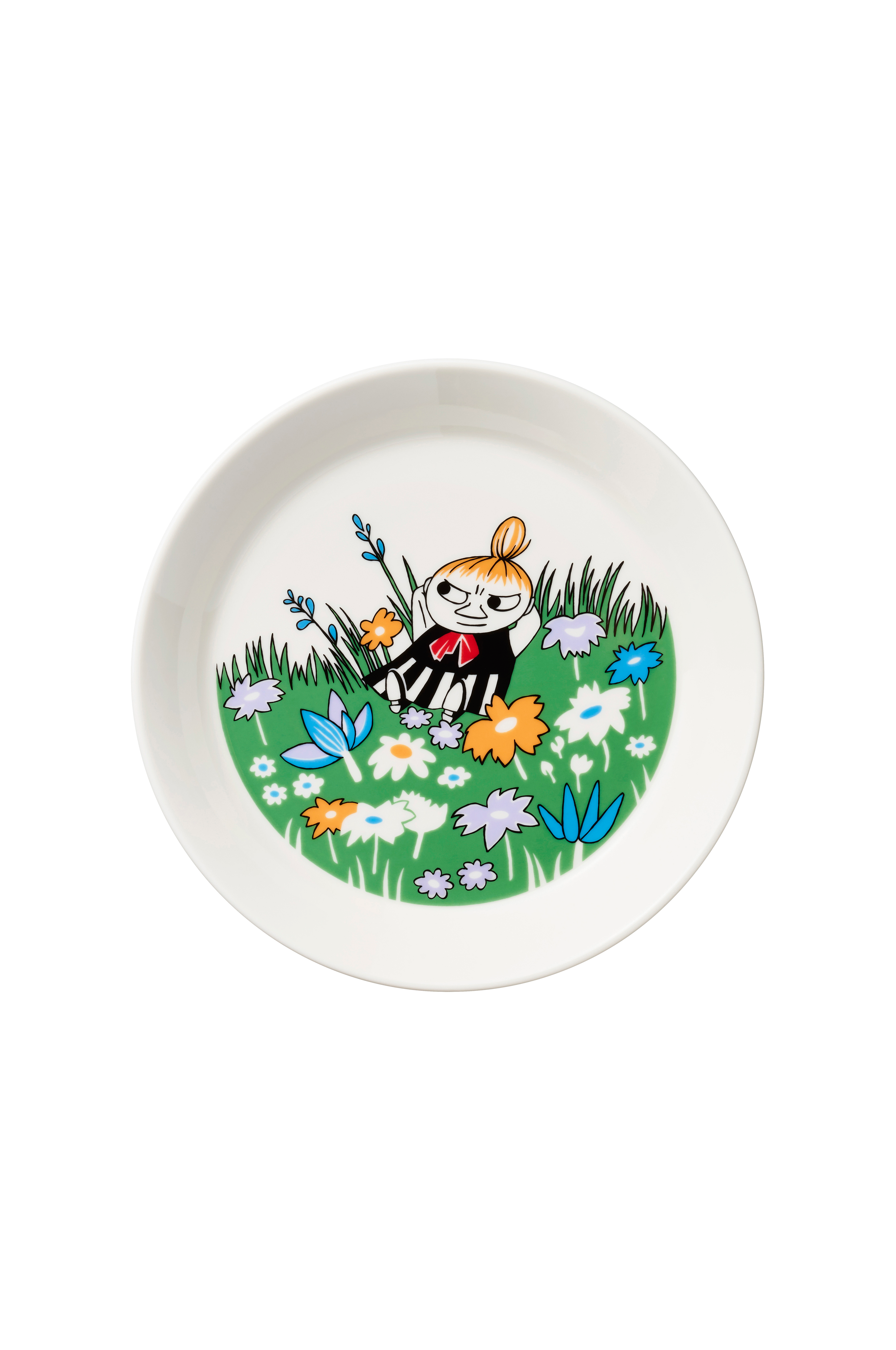 Lille My er modig og frygtløs. Hun undrer sig over den store nye stjerne, der skinner på himlen - en komet, der er ved at ramme Mumidalen. Lille My er ikke så bekymret for kometen, der nærmer sig. Hun lægger sig ned på en eng for at stirre på den. Man kan måske endda sige, at hun nyder den lille katastrofe. Moomin Arabia, plade 19cm, Lille My og engen