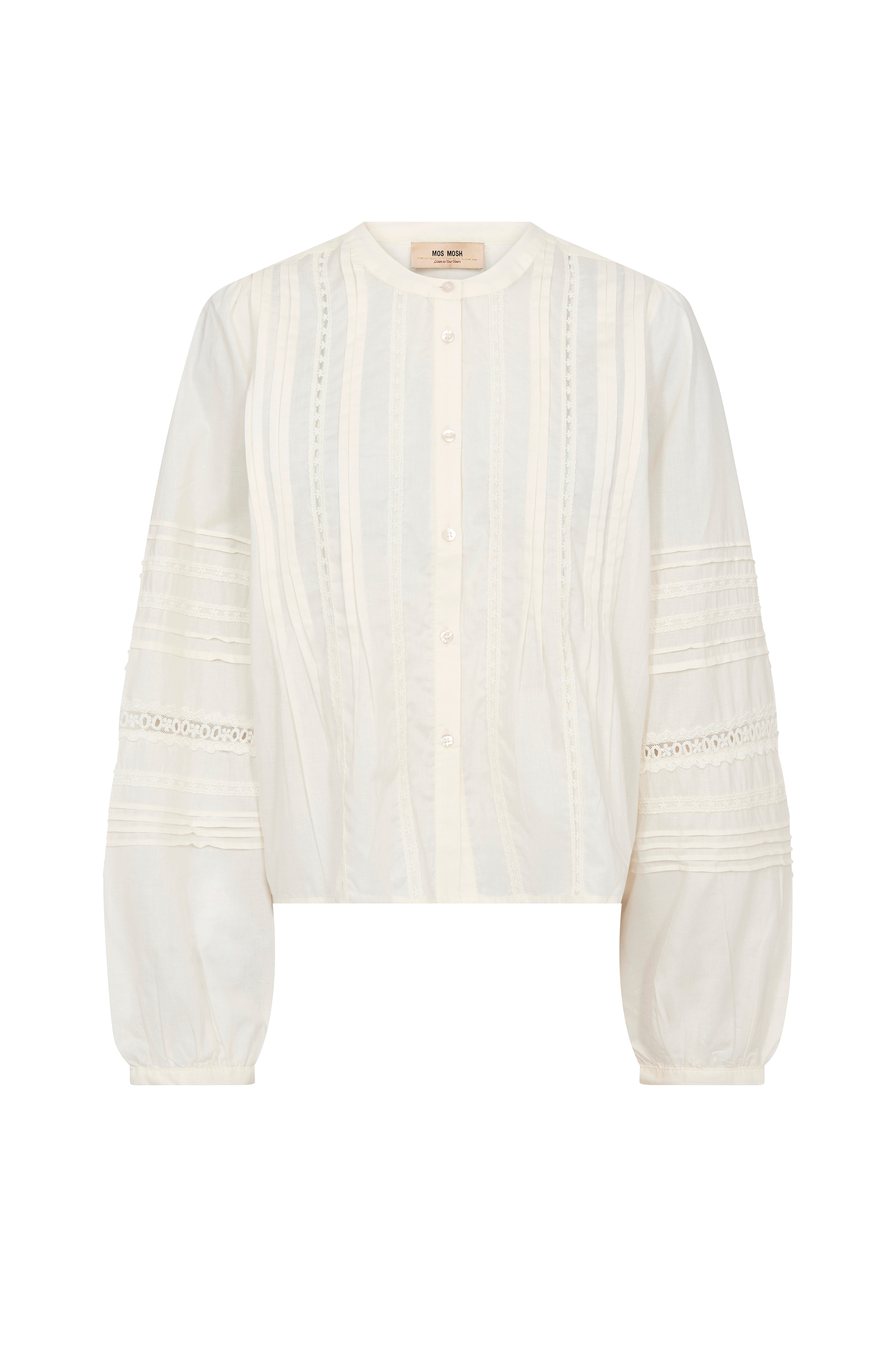• Semitransparent bluse med plisserede detaljer og dekorativ blonde• Rund halsudskæring• Knapper foran• Lange pufærmer med tynde manchetter ved manchetterne