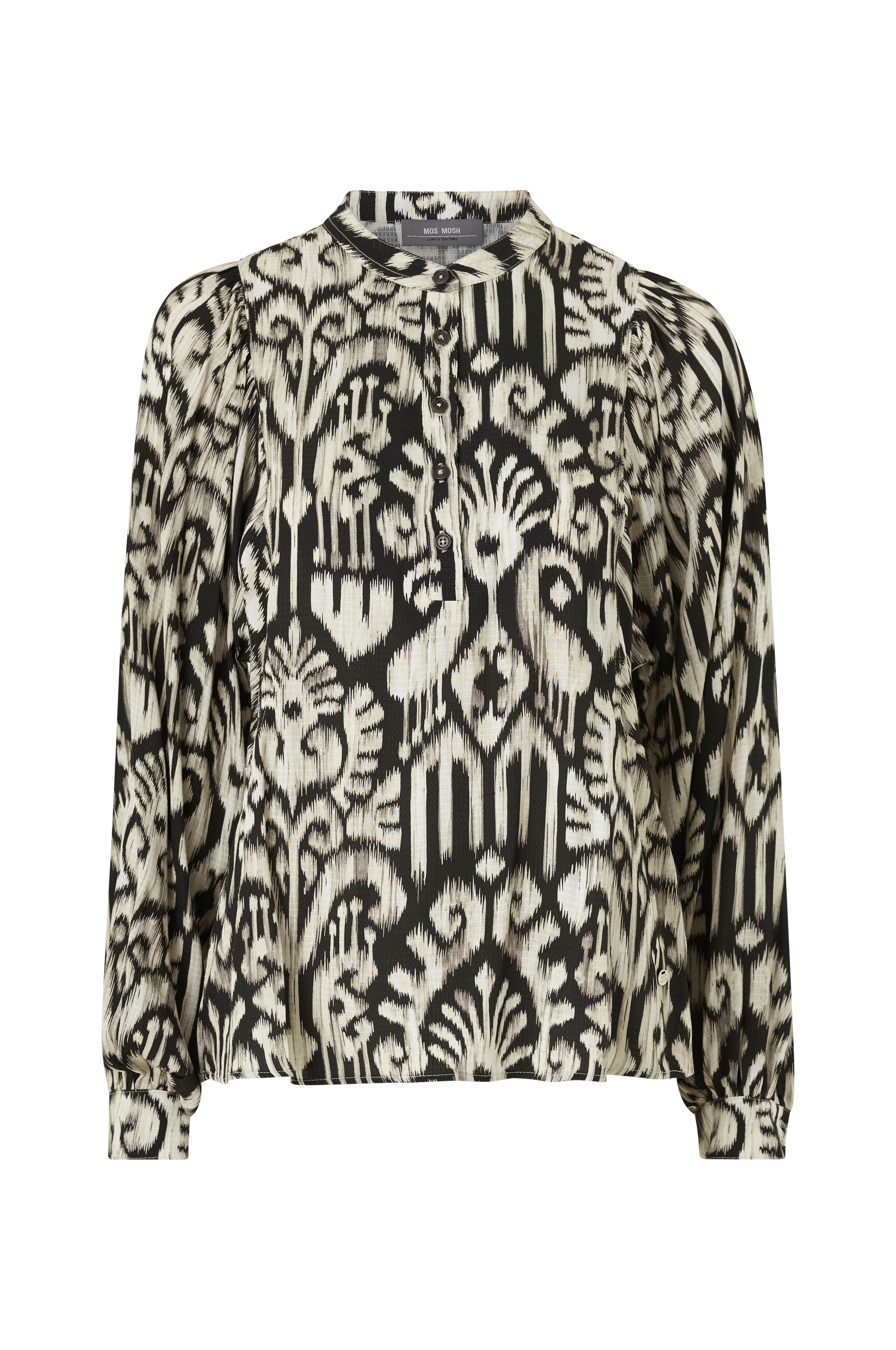 • Let figurformet model• Rund hals• Kort knaplukning foran• Bredt ballonærme med manchet ved manchetterne