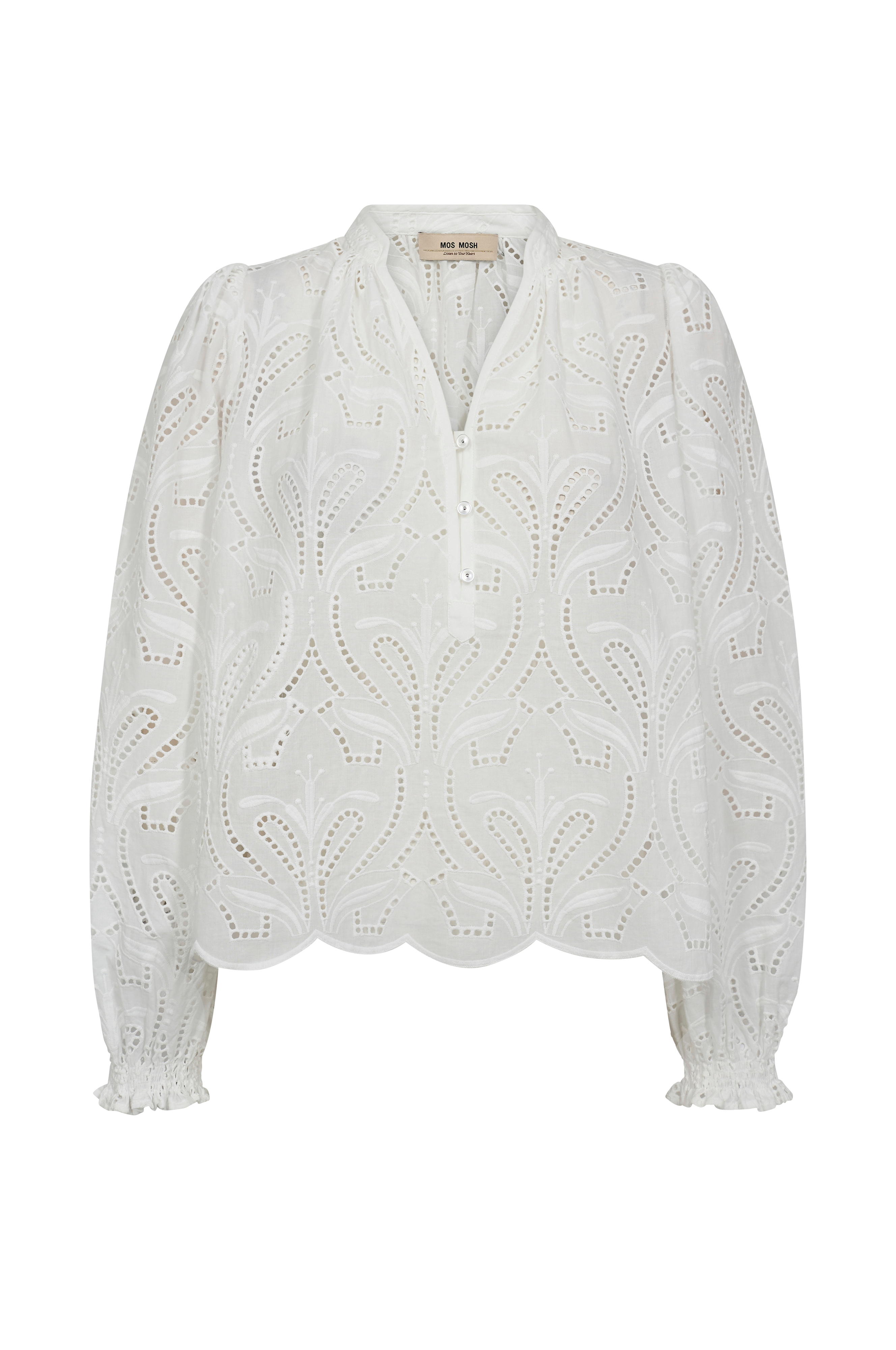 • Bluse i bomuld med hulbroderier hele vejen rundt• Afslappet pasform• V-hals• Tre knapper• Elastik ved manchetterne• Bølget søm