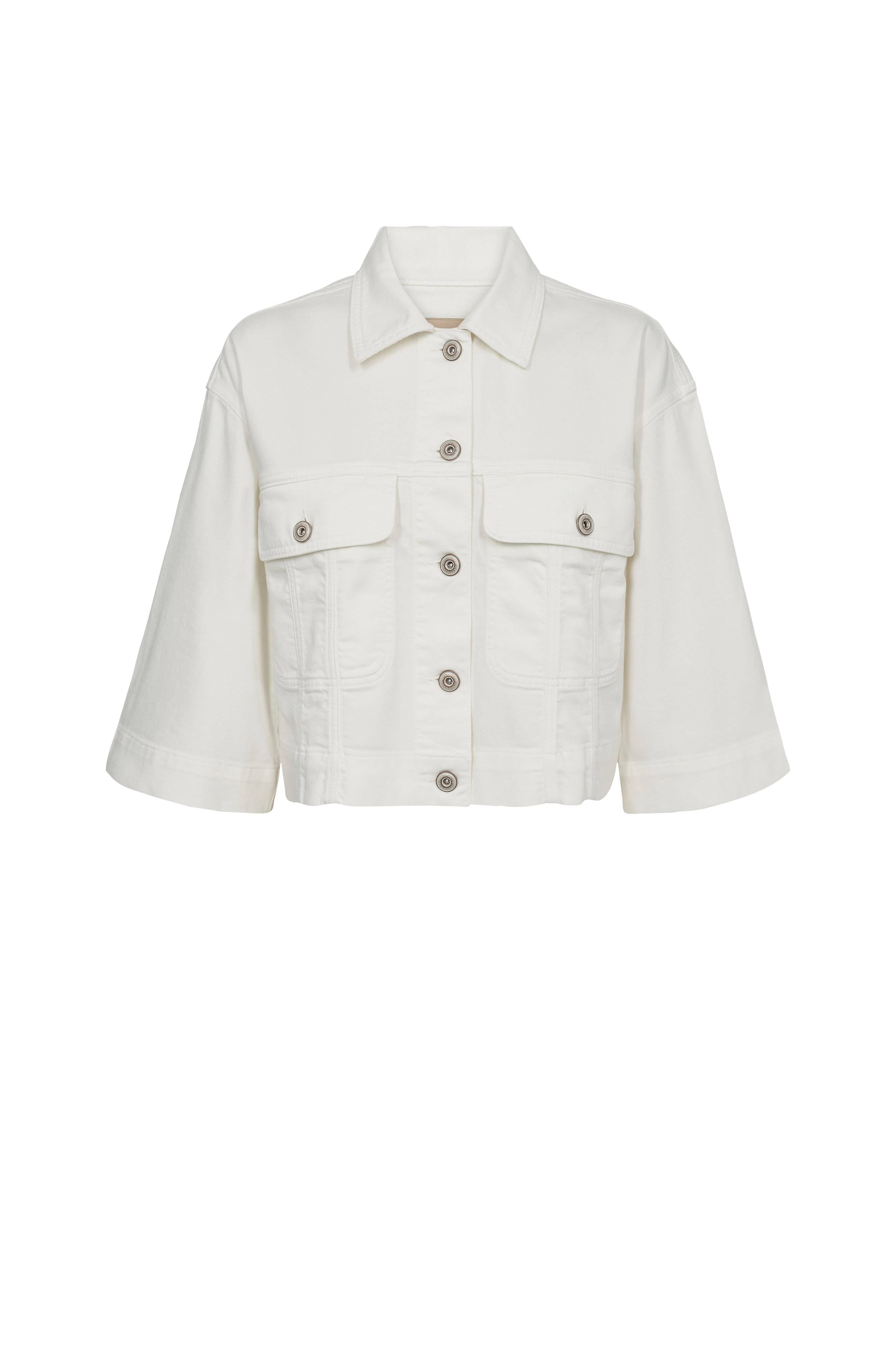 • Croppet cowboyjakke• To brystlommer med knapbare lommelåg• Halvlange ærmer• Længde: 52 cm i størrelse S