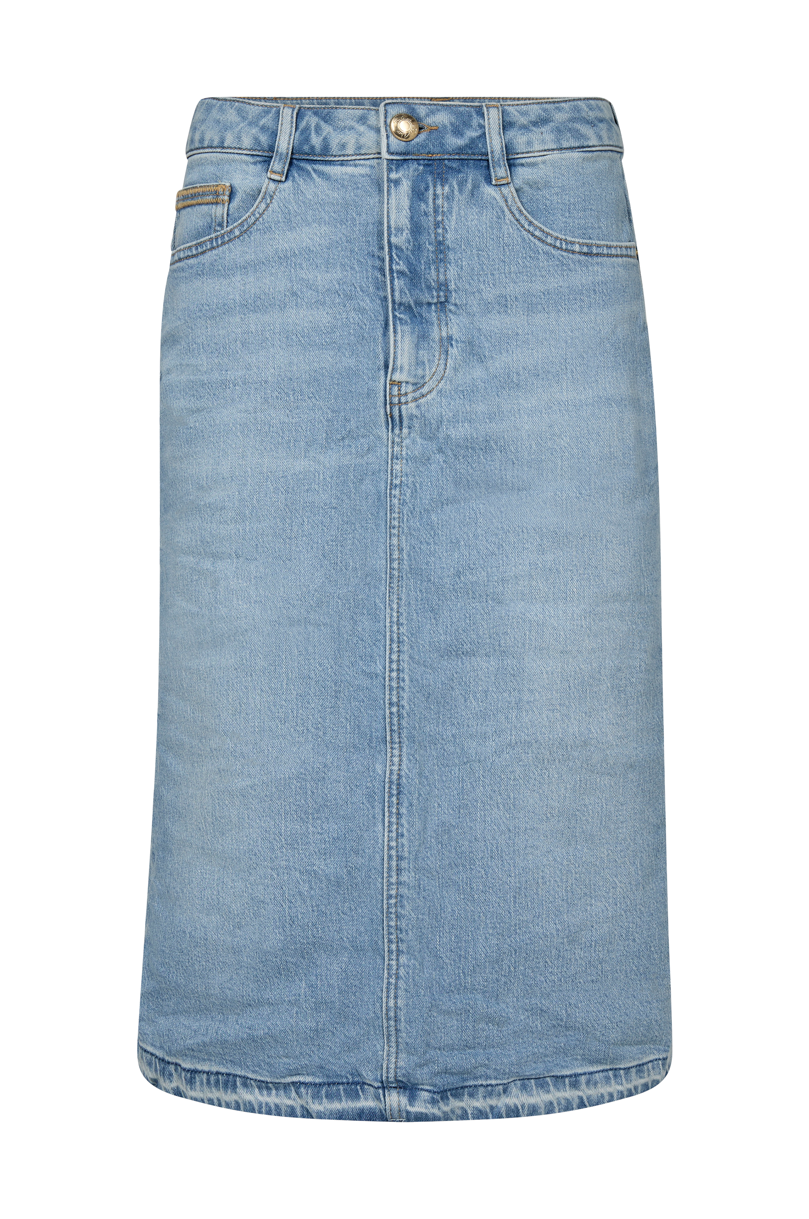 • Cowboynederdel i strækdenim• Femlommemodel• Rå søm• Slids bagpå• Gylp med lynlås