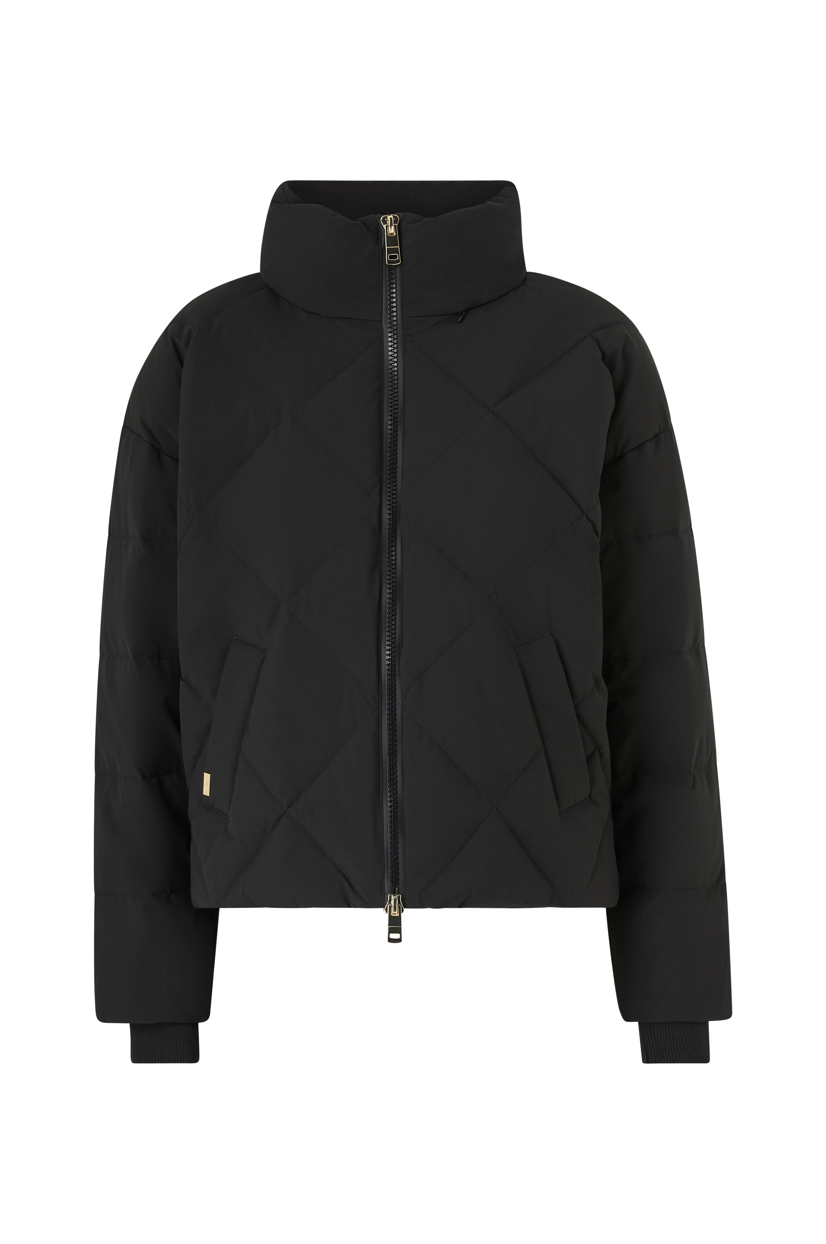 • Kort dunjakke med høj krave• To-vejs lynlås• To lommer med trikotfor• En inderlomme med lynlås• Ribmanchetter ved manchetterne• Træksnørre ved nederste kant• Længde: 61 cm i størrelse S