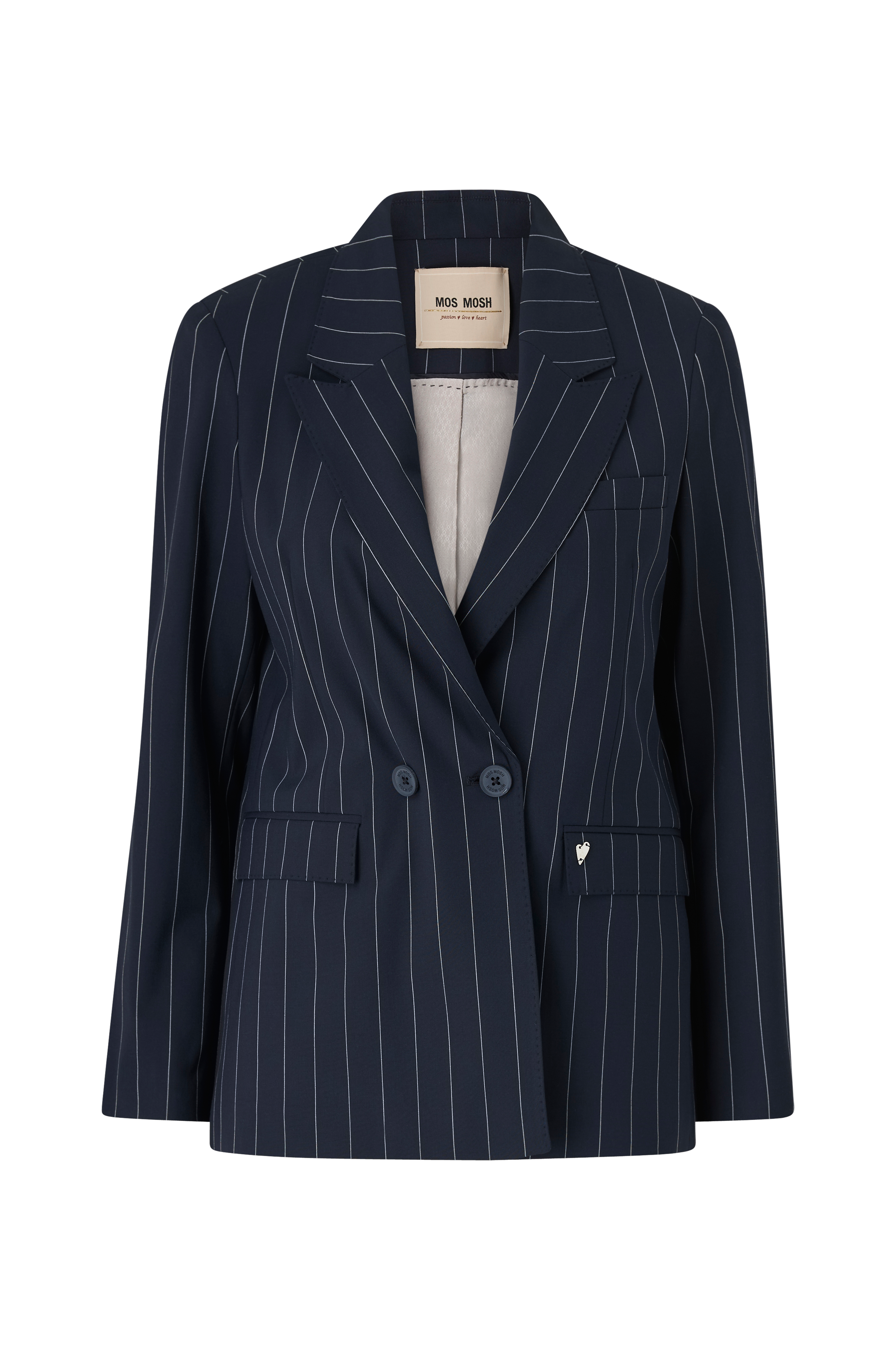 • Nålestribet habitjakke• Dobbelt knaplukning• To lommer• Vævet for