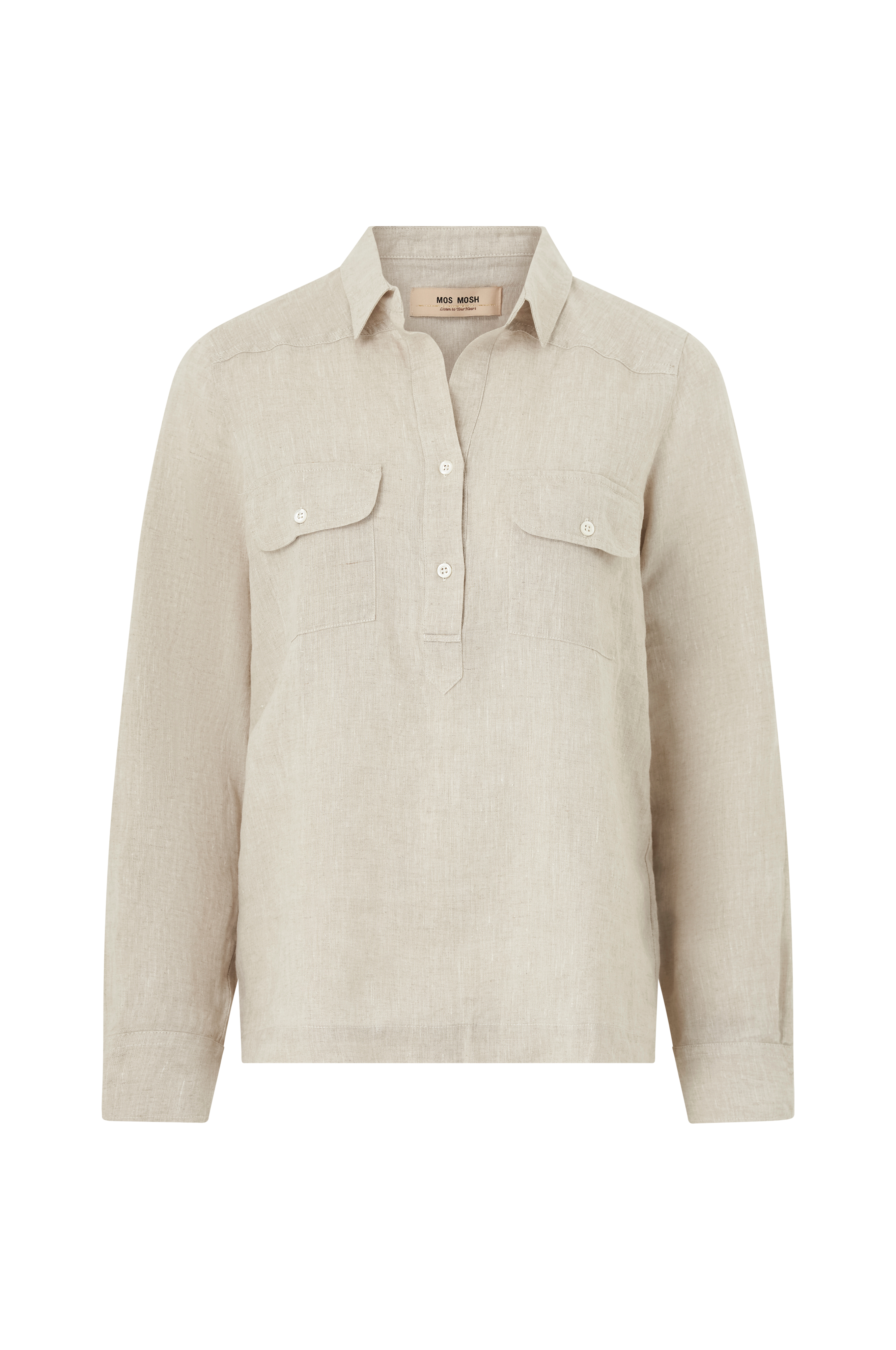 • Lige model med kort knaplukning foran• Lille krave• Brystlommer med låg• Ærme med manchet• Korte slidser nede i siderne