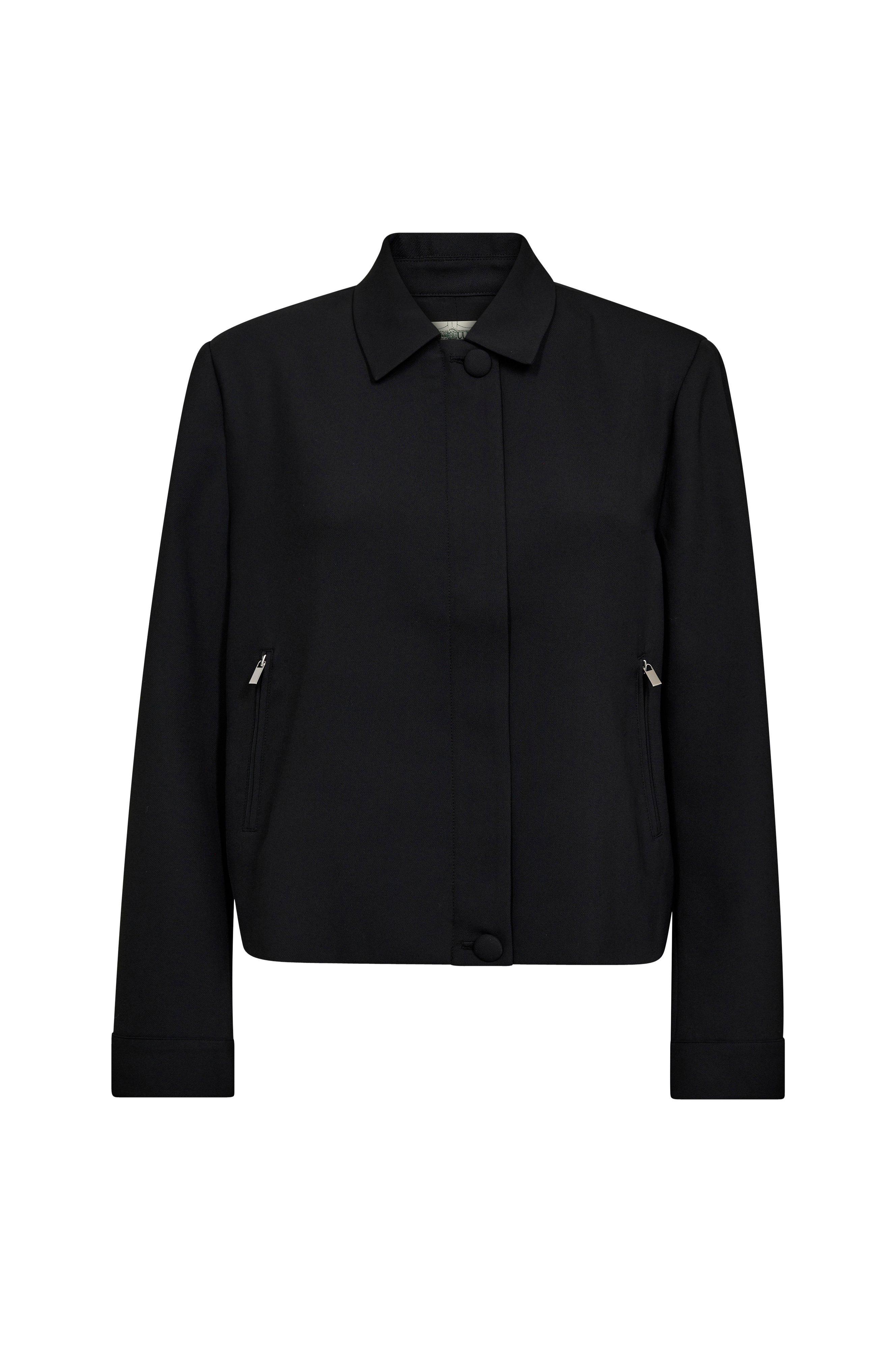 • Tynd, foret jakke med krave• Skulderpuder• Justérbare ærmeafslutninger med to knapper• Skjult lynlås foran med beklædt knap på halsen og ved nederste kant• Sidelommer med lynlås• Elastik nede bagved• Længde: 51 cm i størrelse S