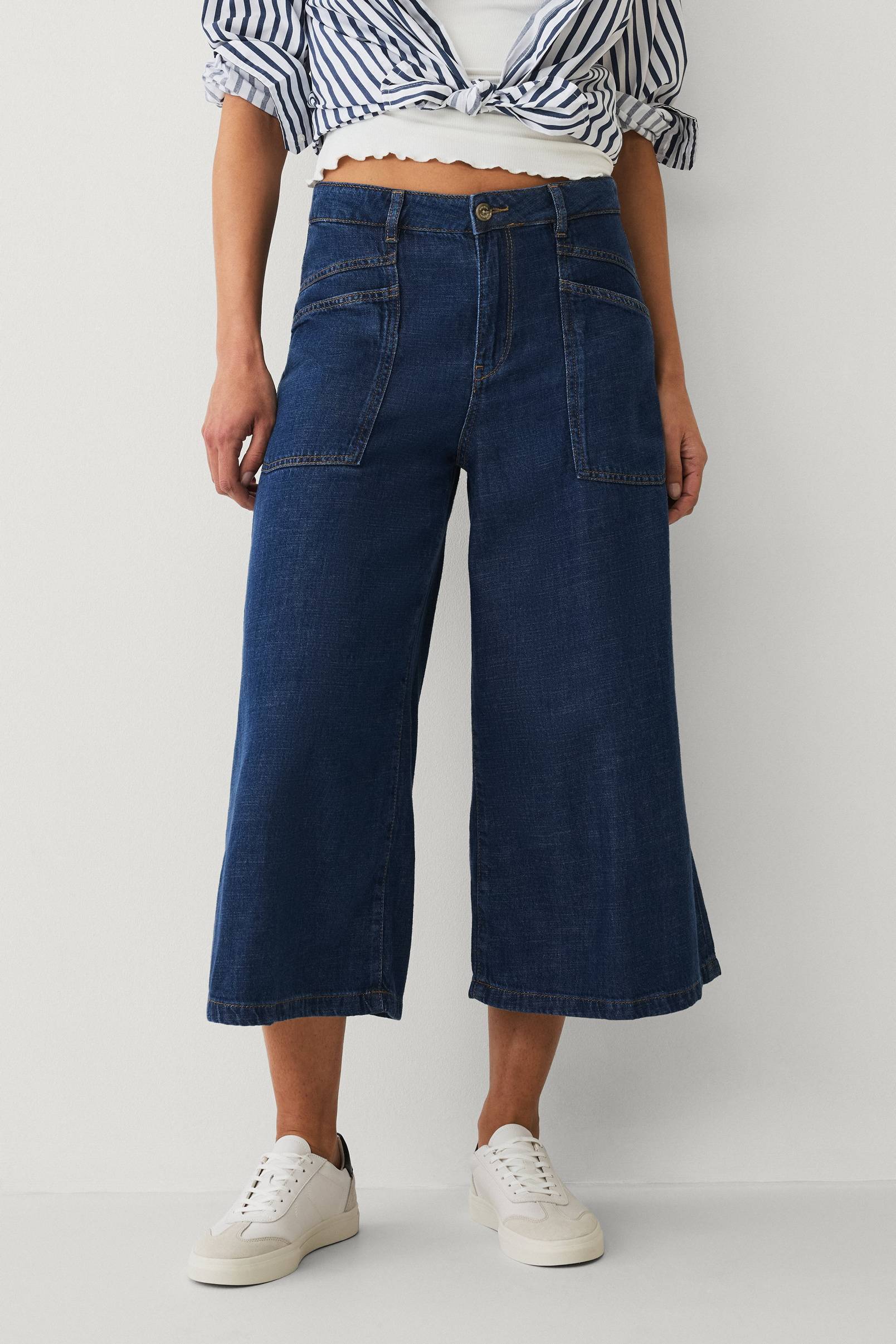 • Jeans med culottedesign og brede ben• Høj talje• Bælteløkker• Gylp med lynlås• To forlommer• To baglommer