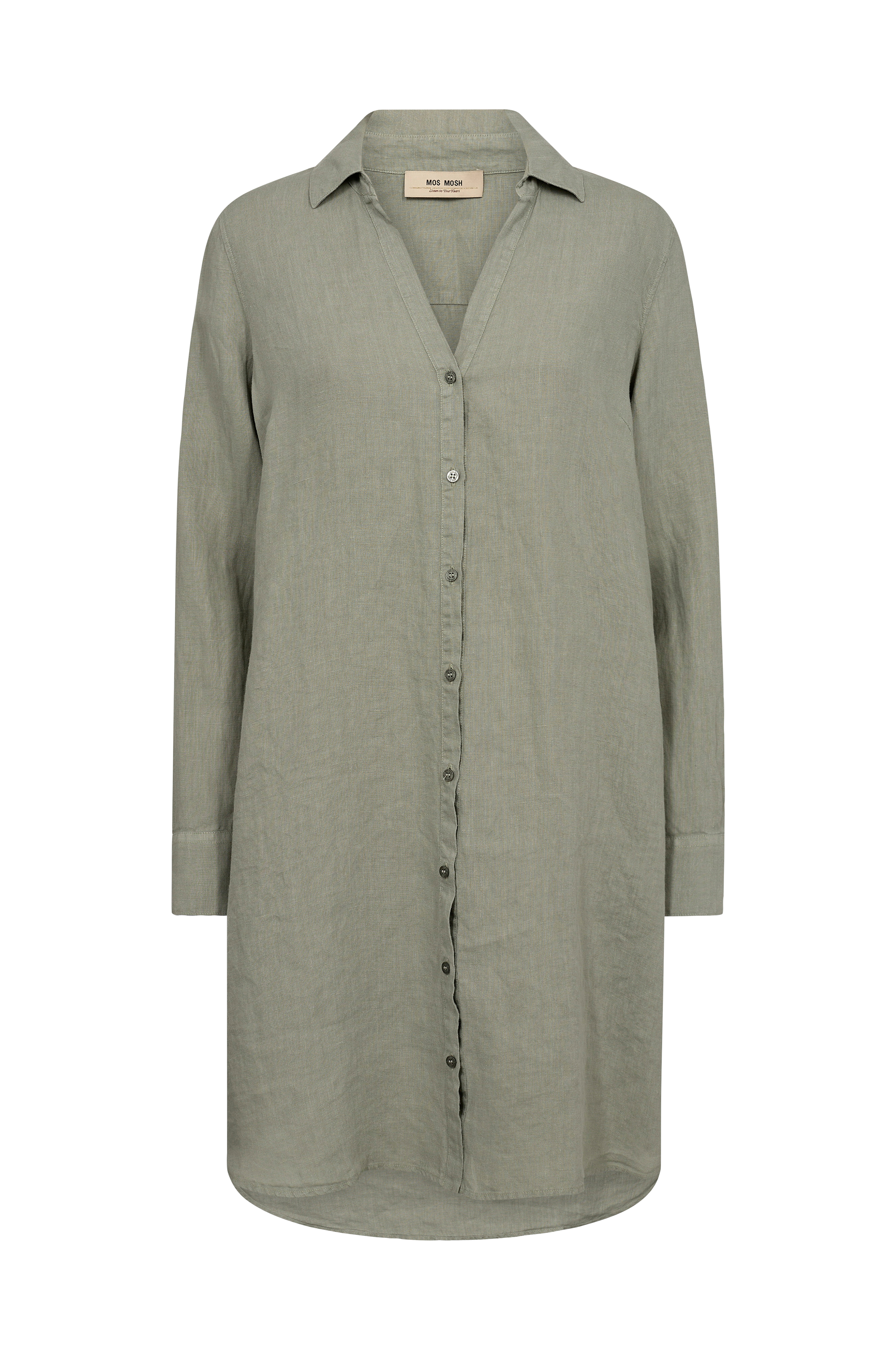 • Kjole i hør med løs pasform• Krave• V-udskæring• Knapper hele vejen frem• Manchet med en knap• Længde: 98 cm i størrelse S