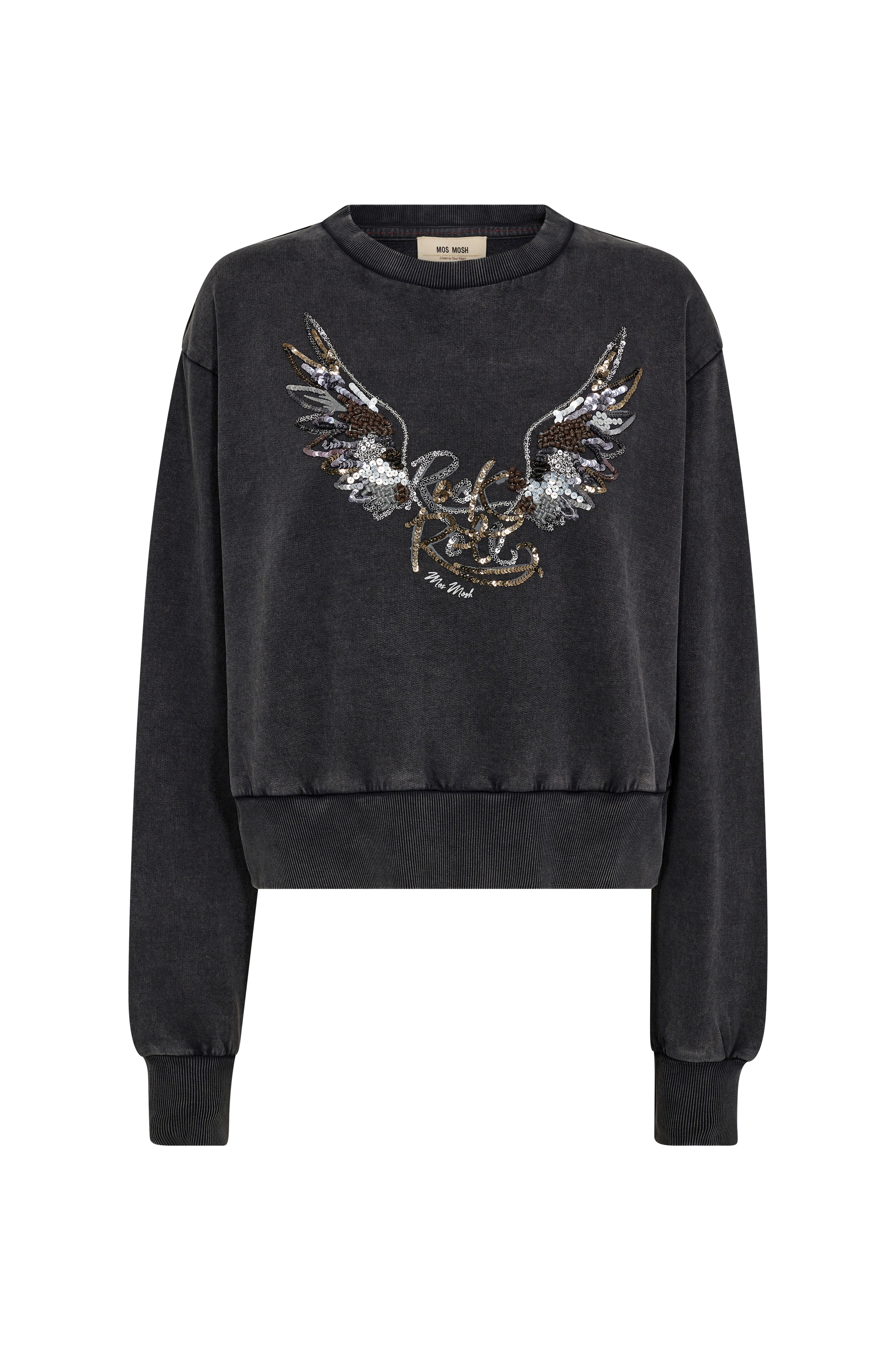 • Sweatshirt i bomuld med rund, ribbet halsudskæring• Pailletbesat mønster foran• Ribmanchetter ved manchetterne og ved nederste kant