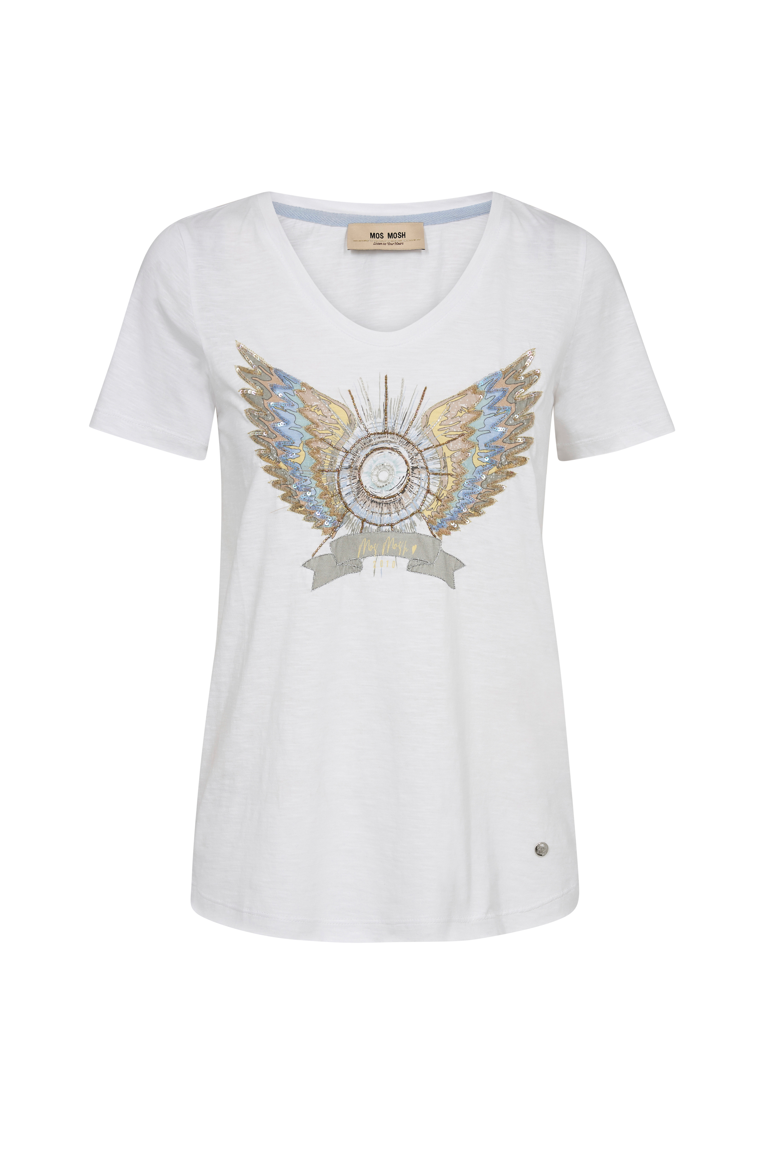 • Applikationer med pailleter på brystet• Rund hals med ribkant• Kort ærme• Rå kanter nederst og ved manchetterne