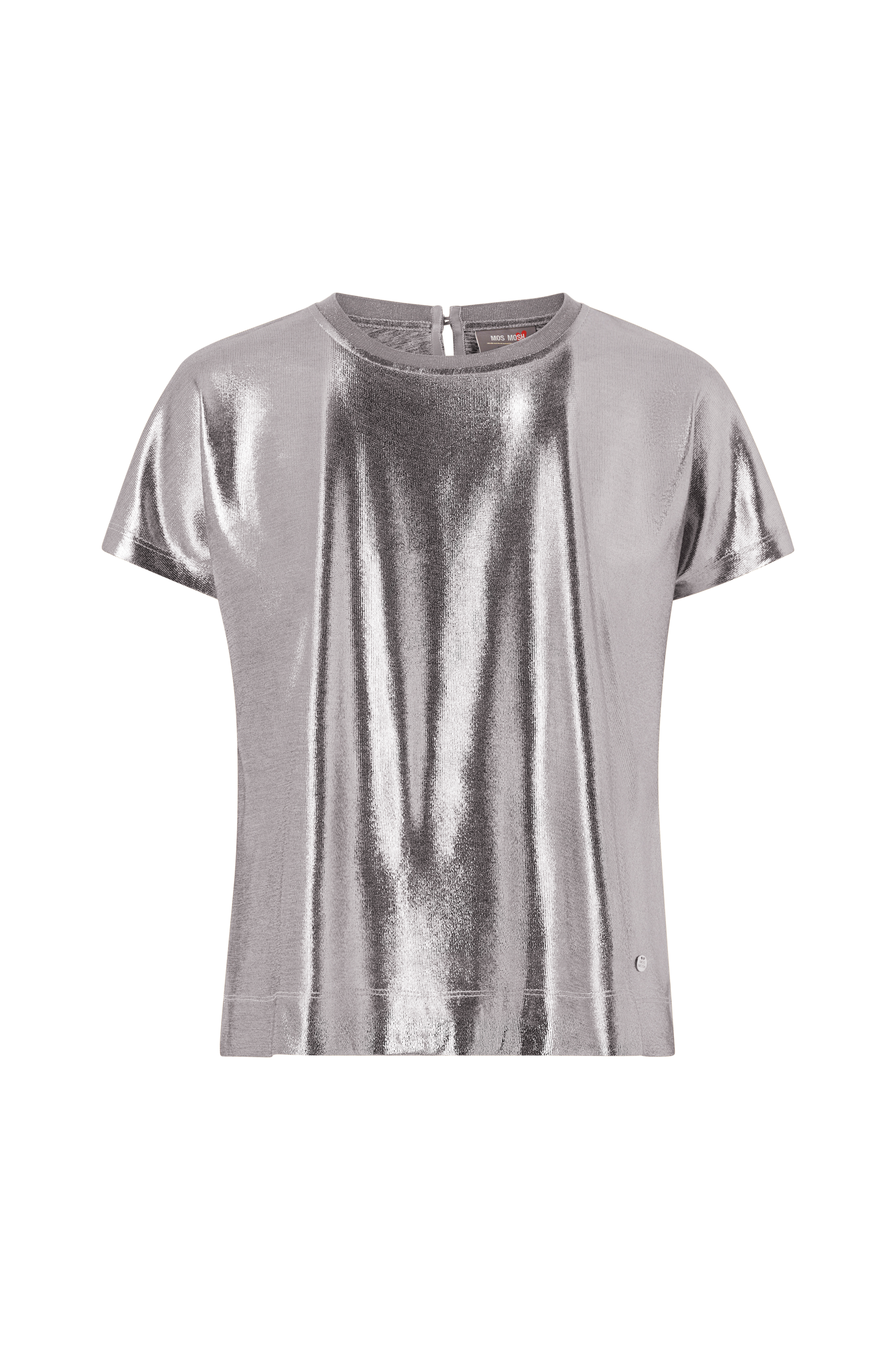 • Løs pasform• Elastisk materiale• Rund halsudskæring• Ventilation med knap i nakken• Metallisk glans
