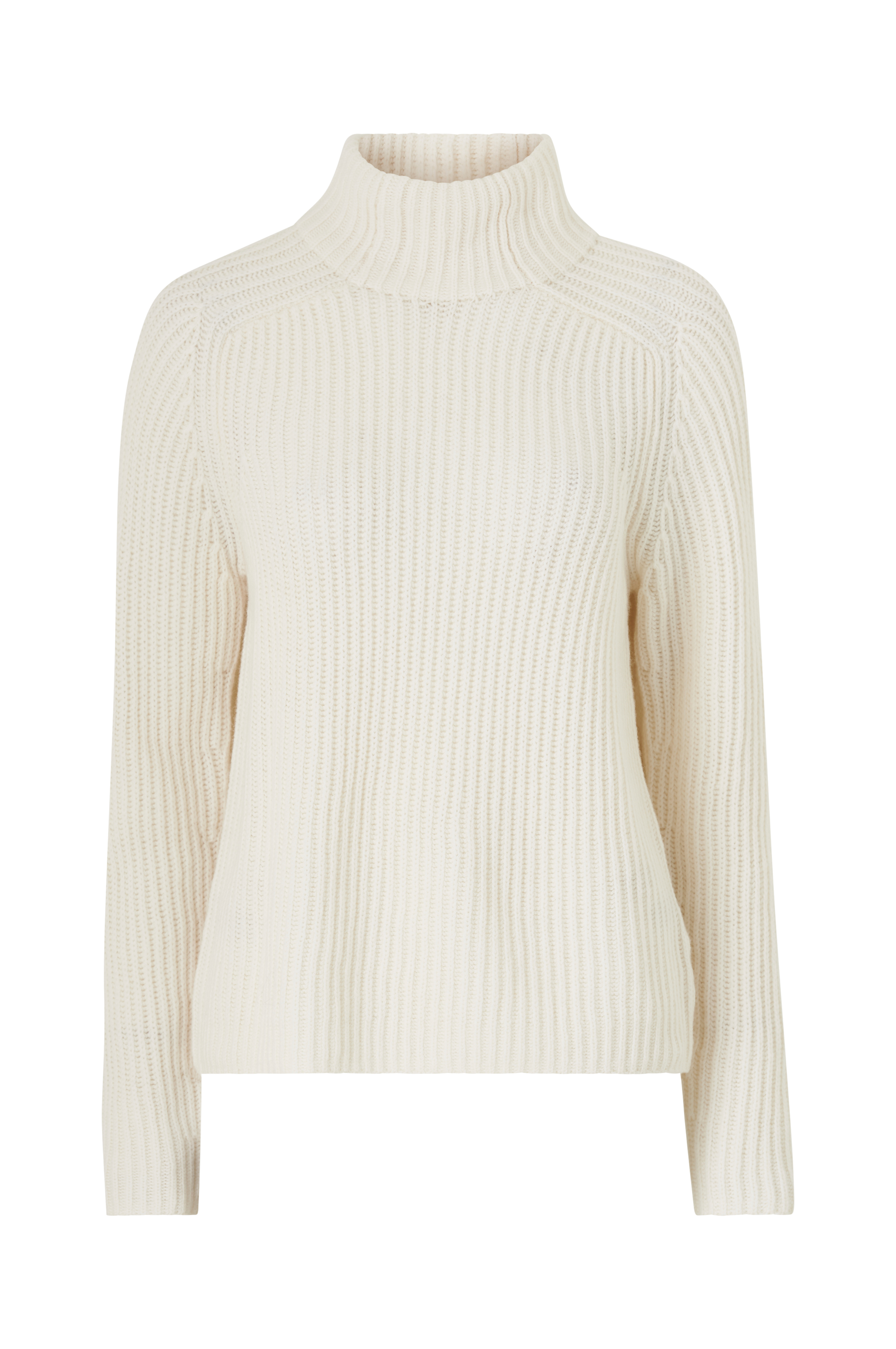 • Lige, strukturstrikket model• Høj, ribstrikket krave• Ekstra langt ærme